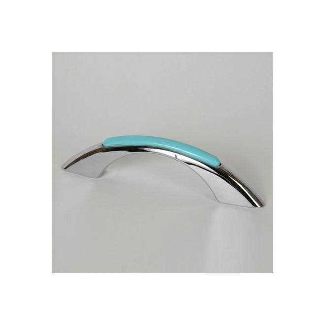 Glass Color/Finish:Robin’s Egg Blue Insert/Polished Chrome Retro Collection Retro Pulls This ‘retro’ design recalls the past with an exciting twist. Baked enamel inserts Compliments the Metal Mushroom Knobs Easy to install with screws provided: use either (2) 8-32 x 1-in or (2) 8-32 x 1-1/2-in long screws, depending on the drawer/door thickness.