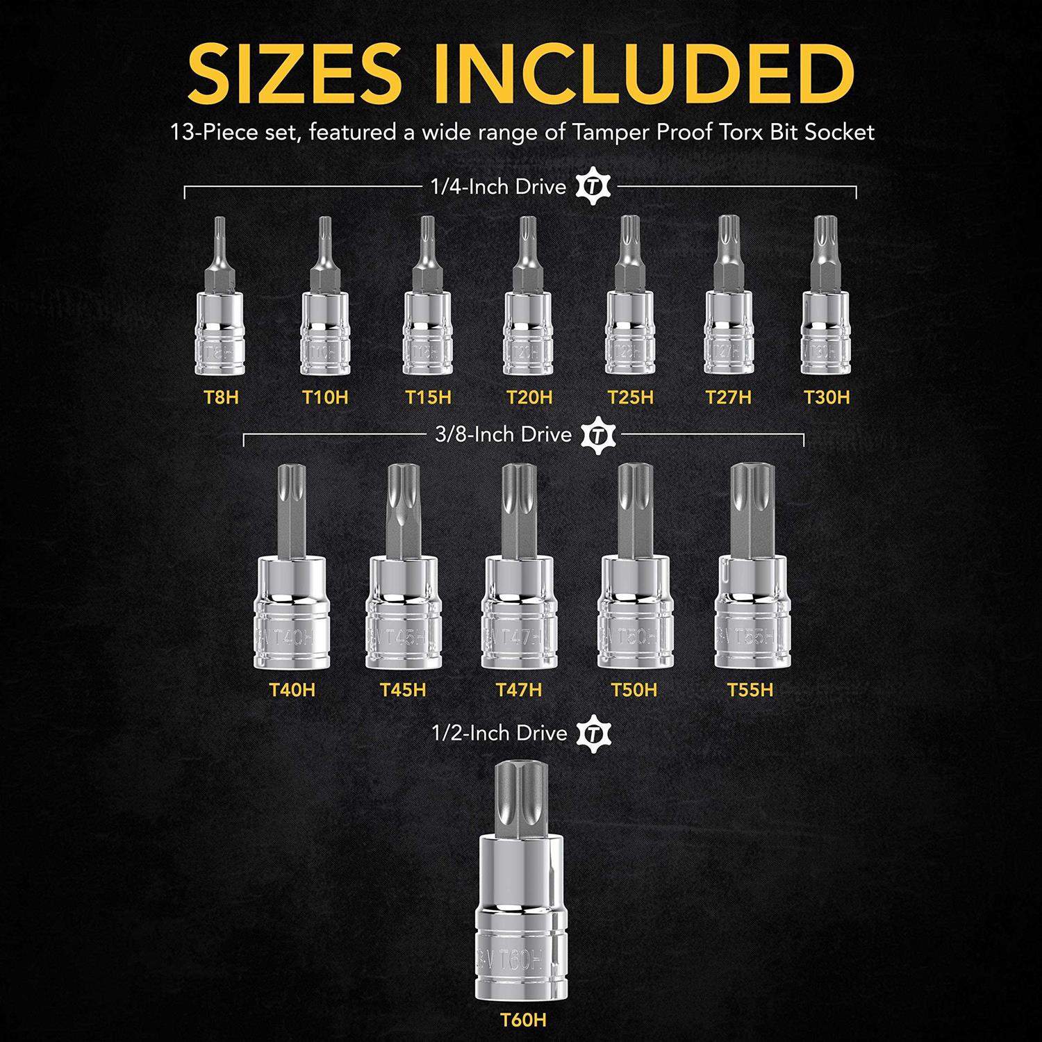 LEXIVON Tamper Proof Torx Bit Socket Set Premium S2 Alloy Steel | 13-Piece Security Star T8 – T60 Set | Enhanced Storage Case (LX-146)