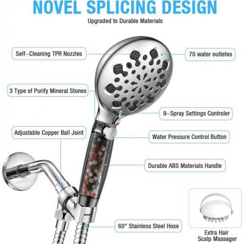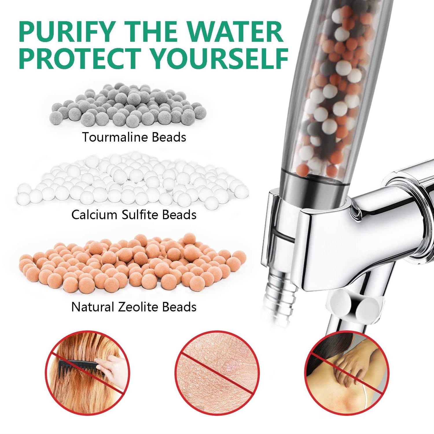 - Water Pressure Control Button3 Type of Purify Mineral Stones Durable ABS Materials Handle.