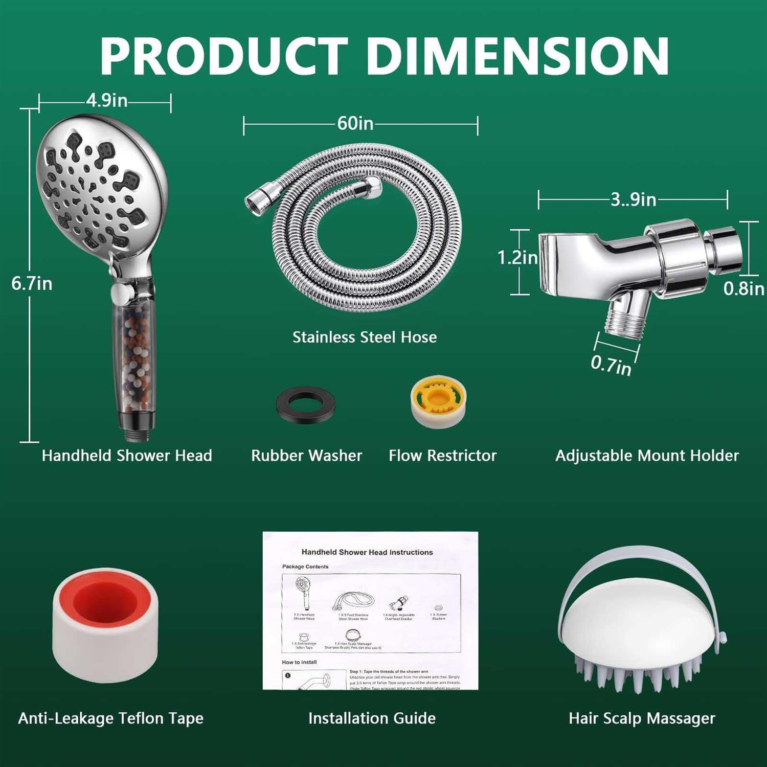 Enhance your shower experience with this high-quality filtered shower head. With a sleek silver finish and a handheld design, this shower head is perfect for those looking for both style and functionality. The LHDZGA brand guarantees a superior product, and this shower head is no exception. nnMeasuring 11.42×5.63×3.11 inches and weighing 1.71 pounds, this shower head is the perfect size for any bathroom. Its 4.9-inch size provides ample coverage for a refreshing shower experience. Say goodbye to hard water and enjoy a clean and invigorating shower every time. Make your bathroom a place of relaxation and luxury with this fabulous filtered shower head.