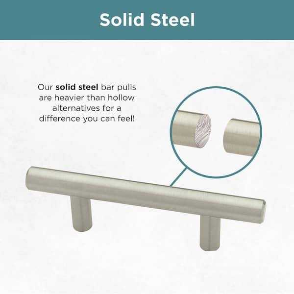 Solid Bar pulls from Liberty offer a modern update with quality solid steel construction. These sleek pull bars coordinate well with today’s popular appliances and most contemporary decor styles. Liberty’s Solid Bar handles are available in a variety of lengths and finishes. These drawer pulls are heavier than the hollow alternatives, for quality you can feel.