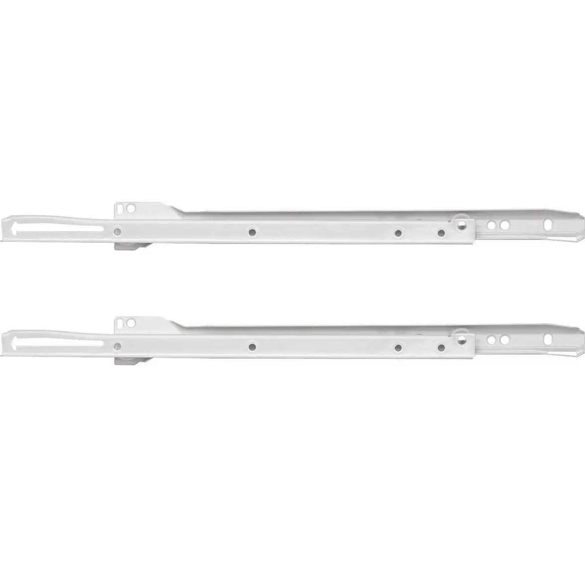 Self-Closing Drawer Slides 1-Pair enable you to put together a functioning kitchen cabinet drawer that holds up to 100 lb. The pack contains 2 slides and the needed hardware. The slides are designed for easy installation. Made of steel White finish Easy to install with included mounting hardware and instructions Self-closing feature Mounts on a 14 in. drawer Supports up to 50 lbs.