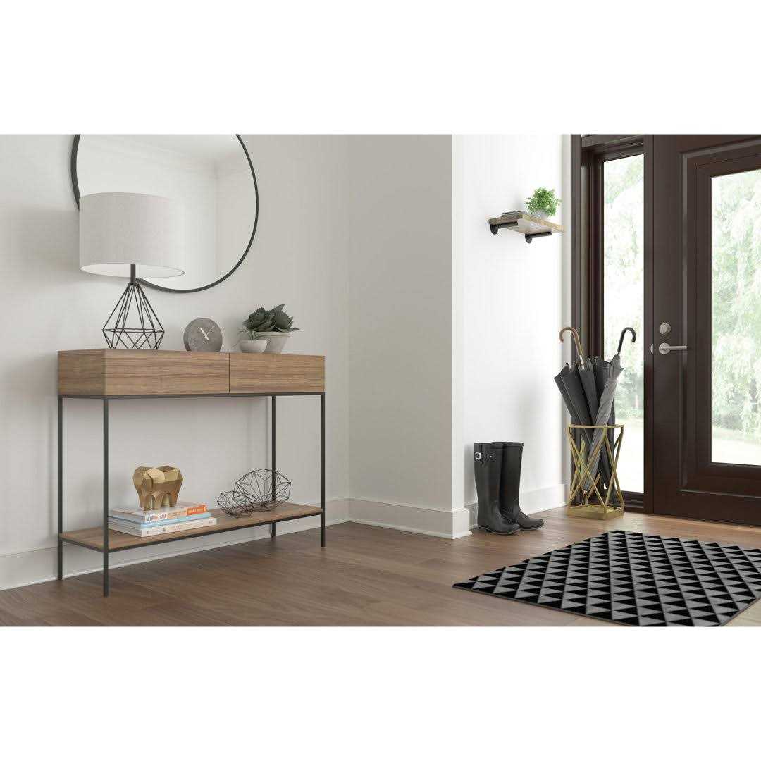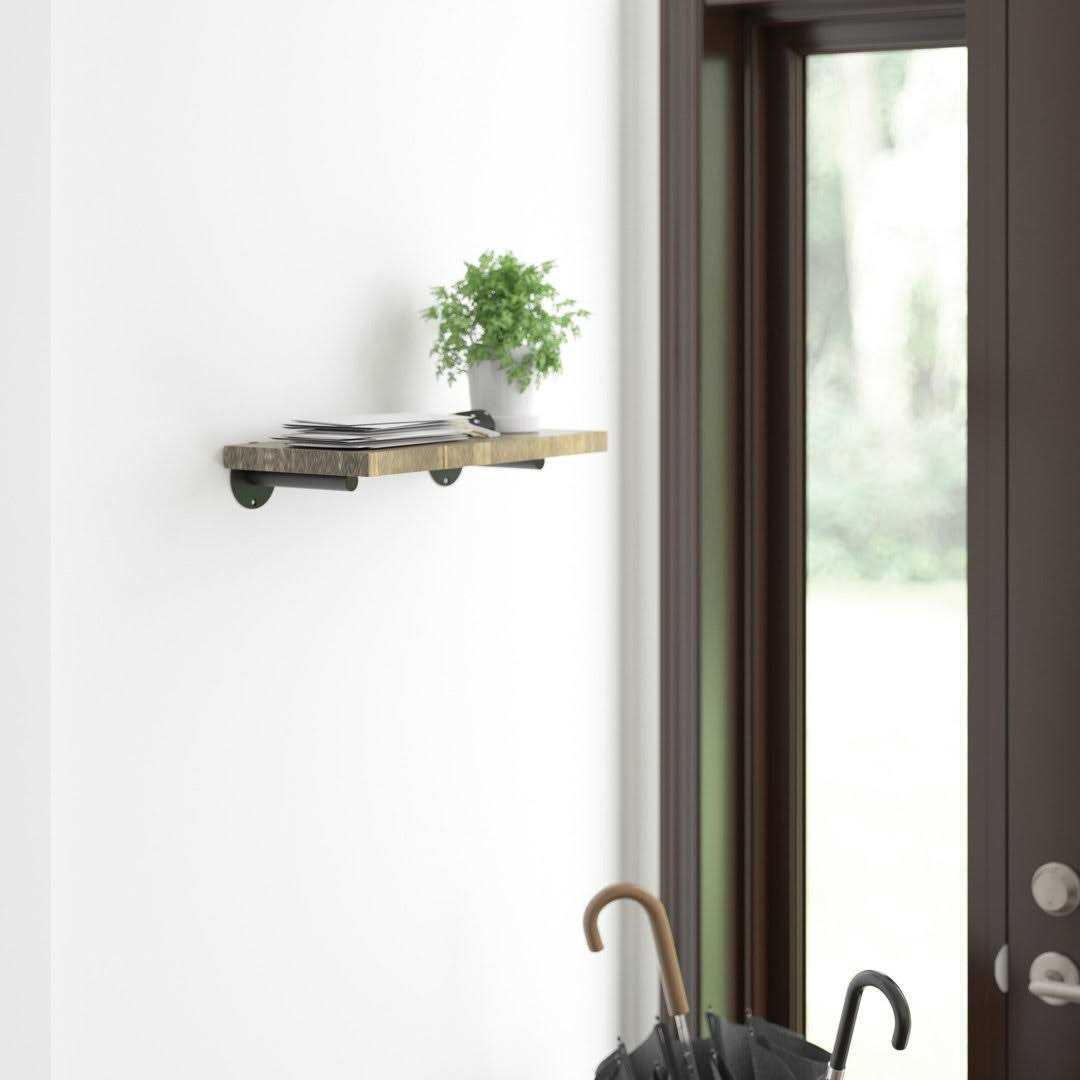 This streamlined design is inspired by industrial pipe details and allows the shelf to rest on top of the bracket. Ideal for entryways, kitchens or living spaces.