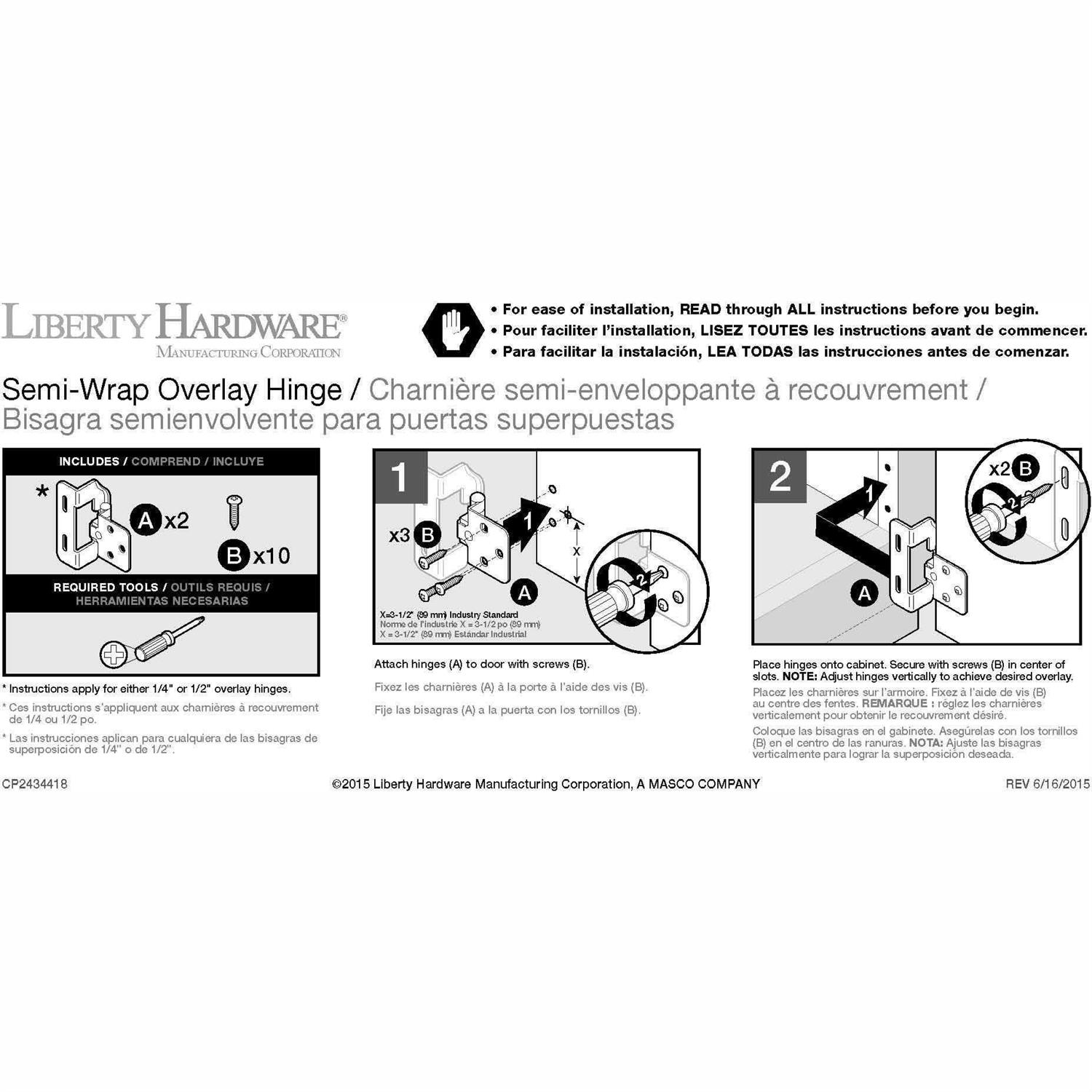 Liberty Hardware H01911c-sn-o Semi-Wrap Overlay Hinge, 1/4″, Satin Nickel