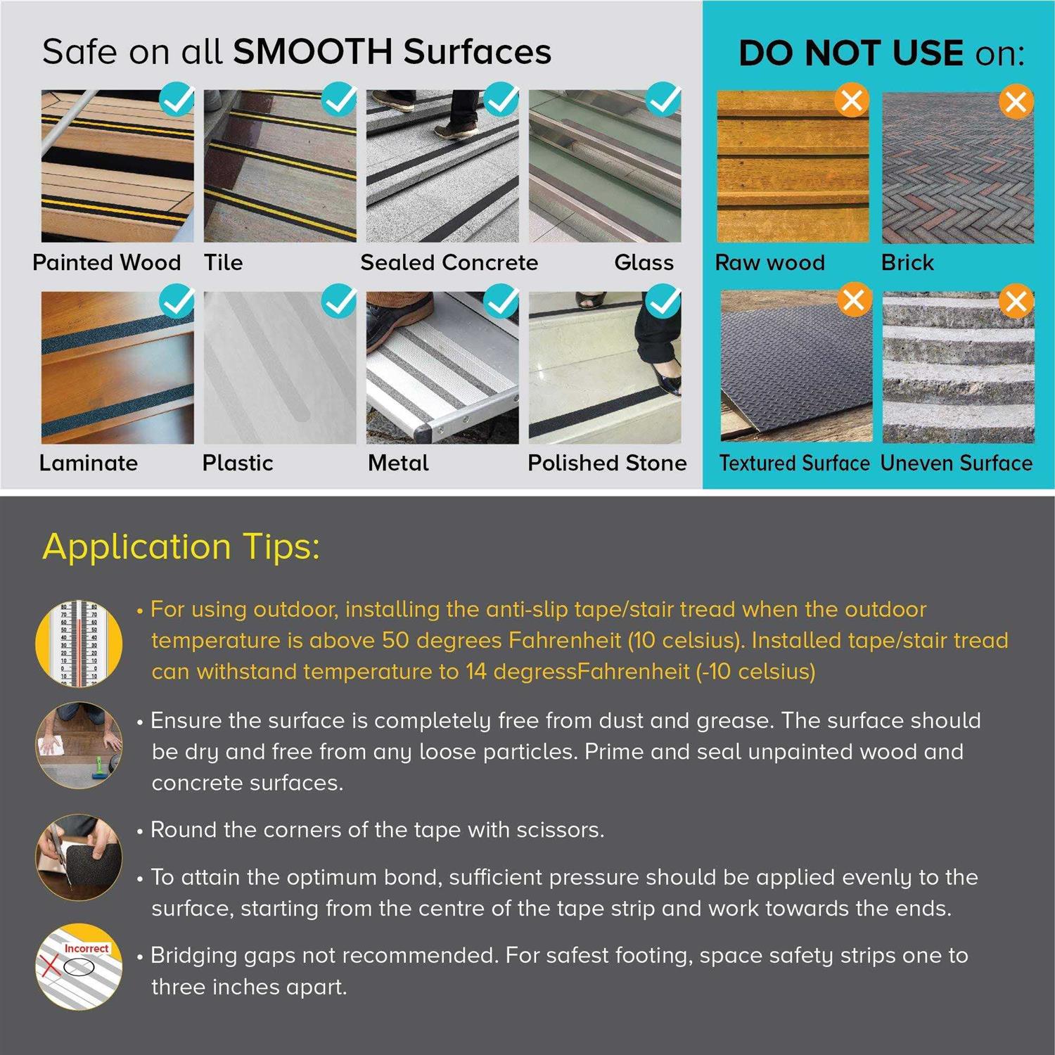 Safety Warning Tapes by LifeGrip Stay on Track. Details:LifeGrip Anti-Slip Safety Tapes, aluminum oxide coated, slip-resistant material adhered by a durable epoxy resin to an Acrylic pressure-sensitive adhesive backed PET film. LifeGrip Anti-Slip Safety Tapes provide a safe, non-slip surface under shoe traffic to prevent unnecessary slips and falls at any area where slipping is a hazard. A strong PET backing filled with a gritty mineral abrasive to deliver traction on flooring in work areas, stair treads, construction equipment, ramp ways, transportation and recreational vehicles. These tapes are designed for indoor and outdoor use wherever a non-skid surface is required.