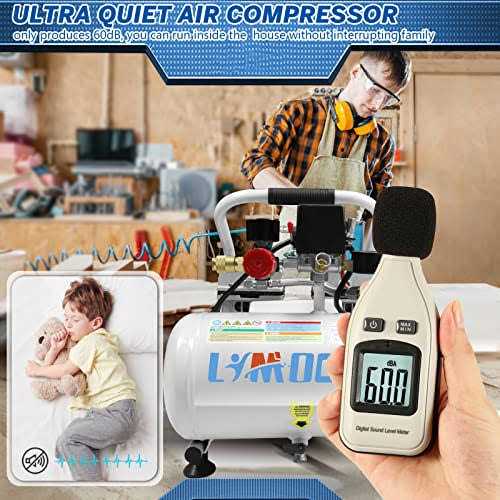 Limodot Ultra Quiet Air Compressor Portable, 60 dB, Silent and Electric for Car and Bike Tires, Nail Gun, and Pneumatic Tools