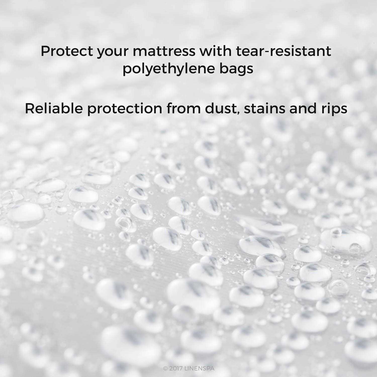 Reliable ProtectionProtect your mattress with tear-resistant polyethylene bags. This two-pack of bags is perfect for moving or storing your mattress or box spring. Guards Against Dirt and PestsGet reliable protection from dust, stains and rips, as well as mice and other pests. These durable bags can also be used to dispose of an old mattress. Fits King and California King SizesThese 94-inch by 96-inch bags are designed to fit any King or California King size mattress or box spring. Bags are recyclable.