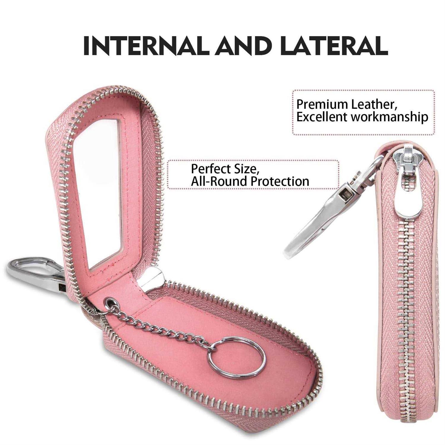 Material with simple and fashion design, Natural leather with strong flexibility and wear resistance, metal zipper and strong hook with great touch feeling, excellent quality and high grade, fully functional and practical. Practical design, this car key case comes with a durable snap hook, nice for carrying in a pocket or hanging on a belt, and the surface is designed in transparent color, so you don’t need take out the key can be unlock(lock) the car door directly..,,LinsCraft