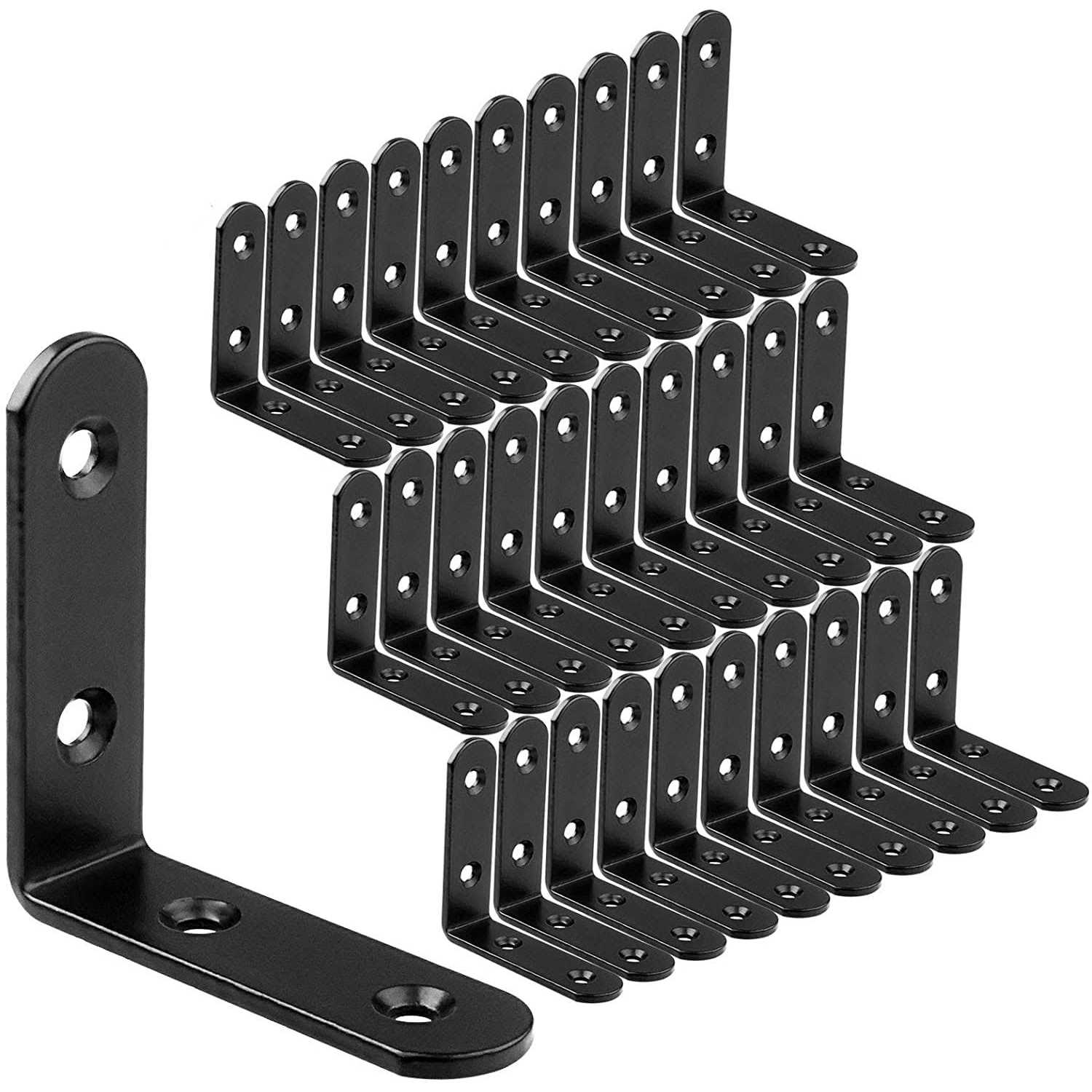 LISHINE 30 Pcs 2.5”x 2.5” L Brackets Corner Bracket for Wood Small Black Corner Brace Joint Iron Right Angle Bracket Corner Fastener for Wood