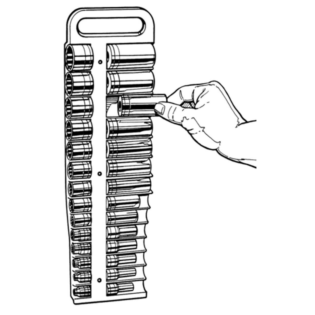 - Twenty-six socket compartments allow you to keep your 1/4″ standard and deep sockets in one convenient holder.