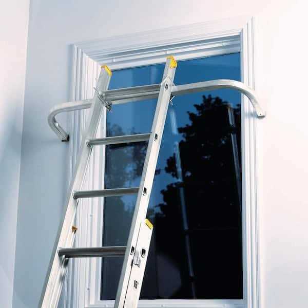 Louisville Ladder stabilizer fits extension and single ladders with rails up to 4 in. by 1 3/4 in. Designed for added stability, holds 12 inches from wall and spans 48 inches to clear most windows. Stabilizers attach with 2 U-bolts and feature replaceable extra heavy-duty rubber tips.