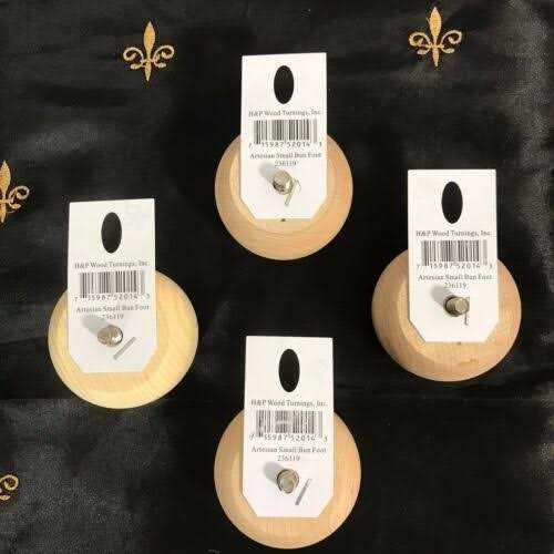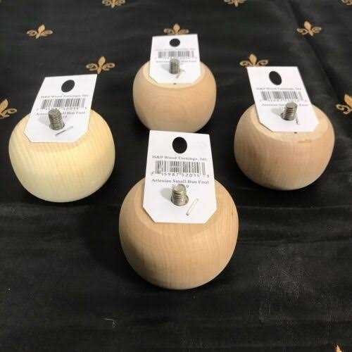 Supporting element for furniture, cabinets and more. Pre-installed screw for fast and easy installation. Elegant, classic look. Can be painted or stained to match other home furnishings. Timeless craftsmanship. Use for other craft projects. Manufactured by H and P Wood Turnings. Bun foot for end table, coffee table and dresser.