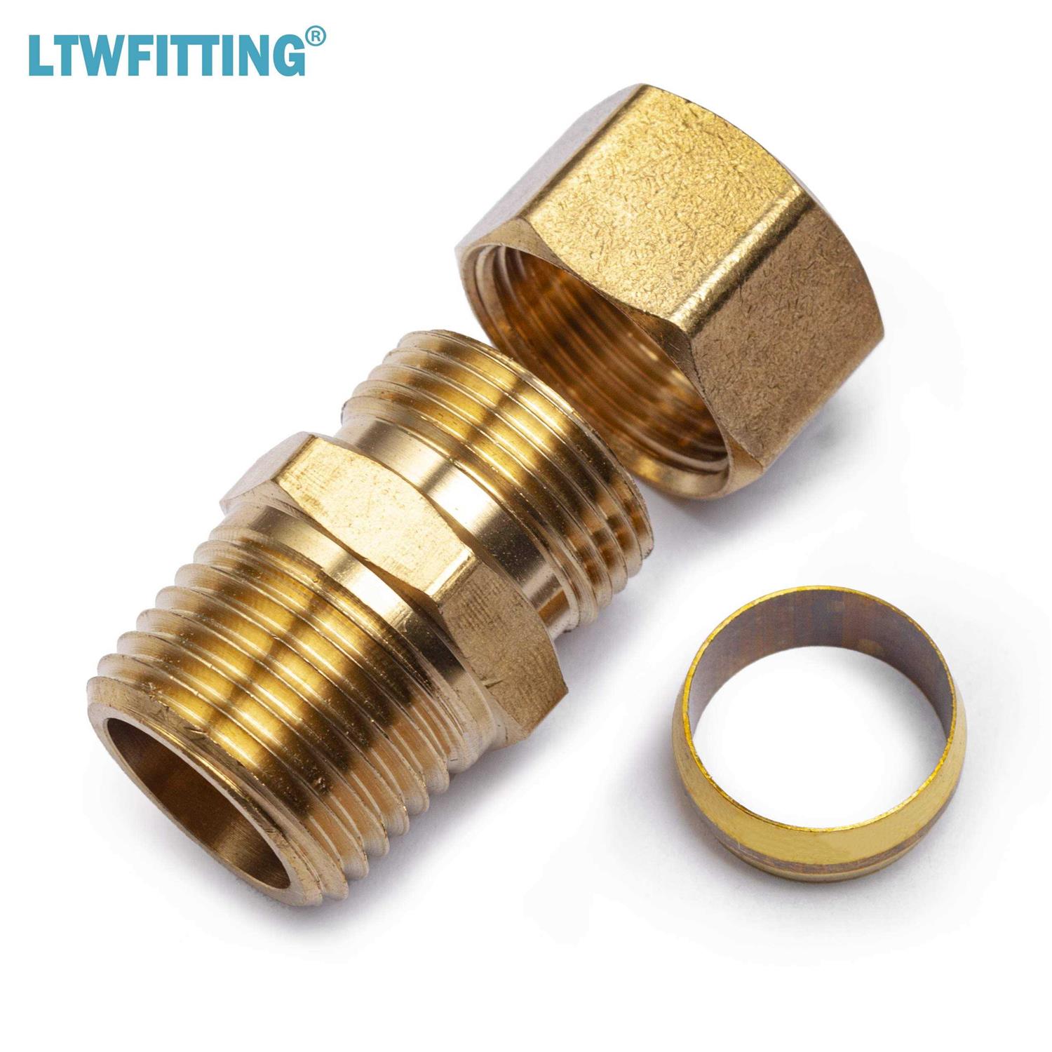 This LTWFITTING Compression tube fitting is made of brass for durable. And it connects to tubing on one end and has an NPT male connector on the other. This fitting is for a fixed connection between tubing and pipe made of copper. Easy to disassemble no flaring tool required. Primary uses water, gasoline, oil, vacuum and air lines.