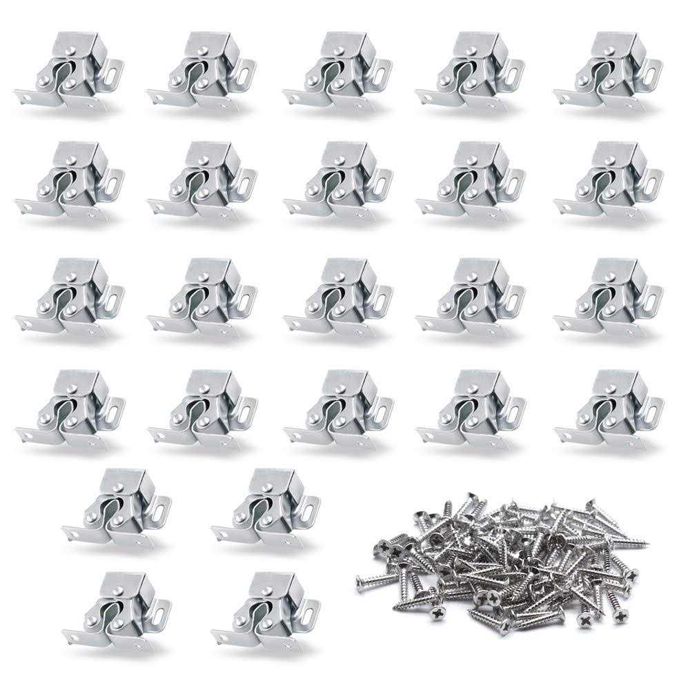 Luomorgo 24 Pack Double Roller Catch Cabinet Latches with Spear Strike for Cupboard Closet Door, Silver