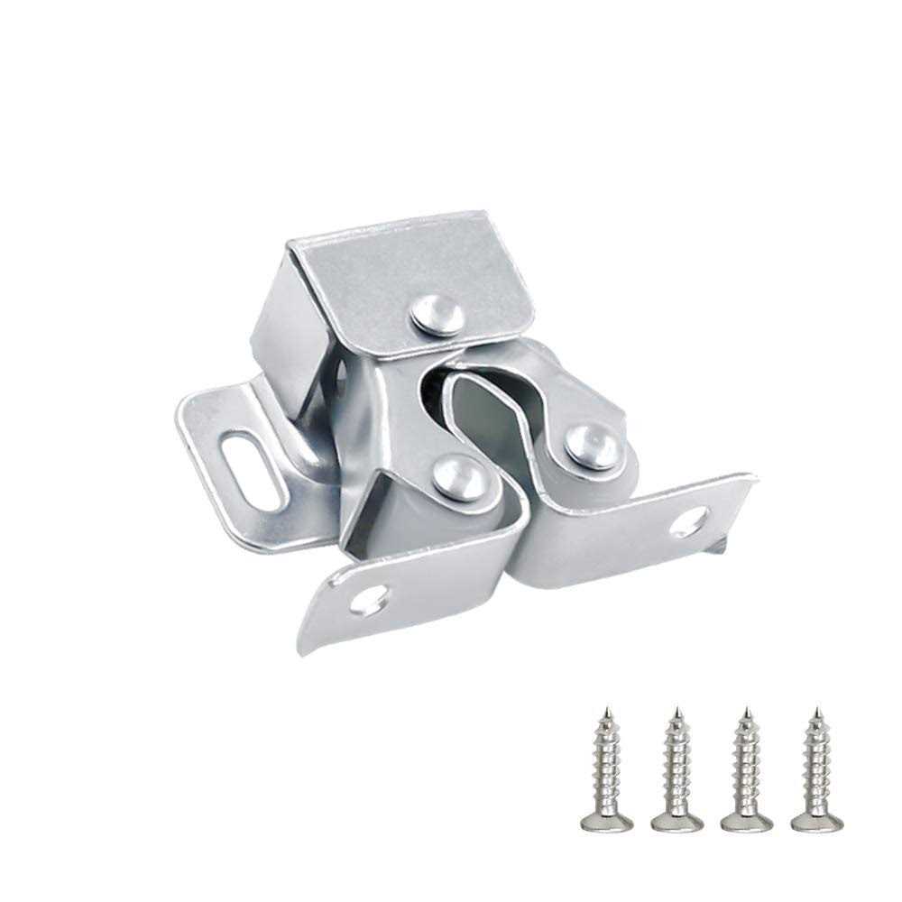 Luomorgo 10 Pack Double Roller Catch Cabinet Latches with Spear Strike for Cupboard Closet Door, Silver
