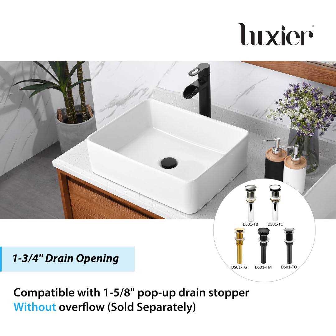 Luxier L-013 Ceramic Rectangular Vessel Bathroom Sink, White
