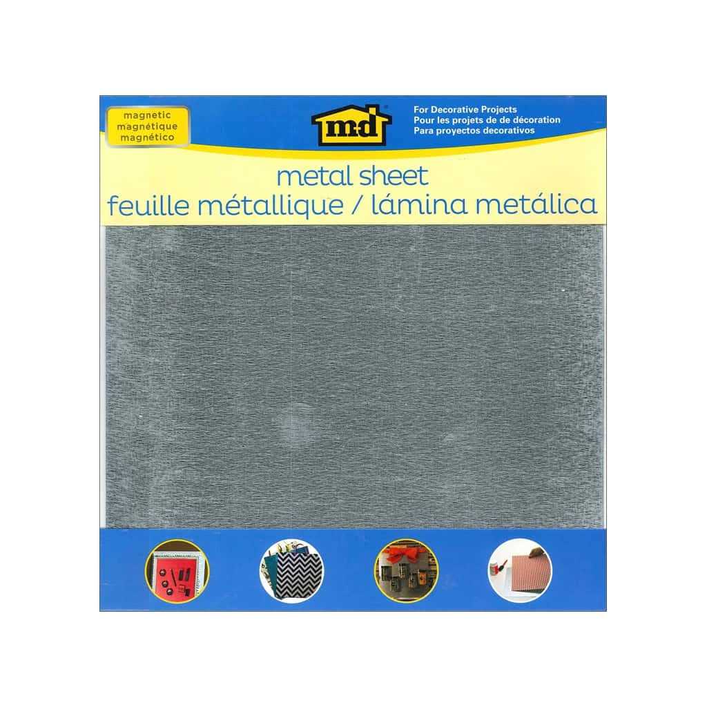 MD metal sheets are a great way to add decorative metallic accents to any project. Sheets cut easily with tin snips. Use caution as metal edges may be sharp. 12″x 12″ Galvanized Steel- Magnetic sheet metal with no holes or pattern. Approximately .018″ thick.