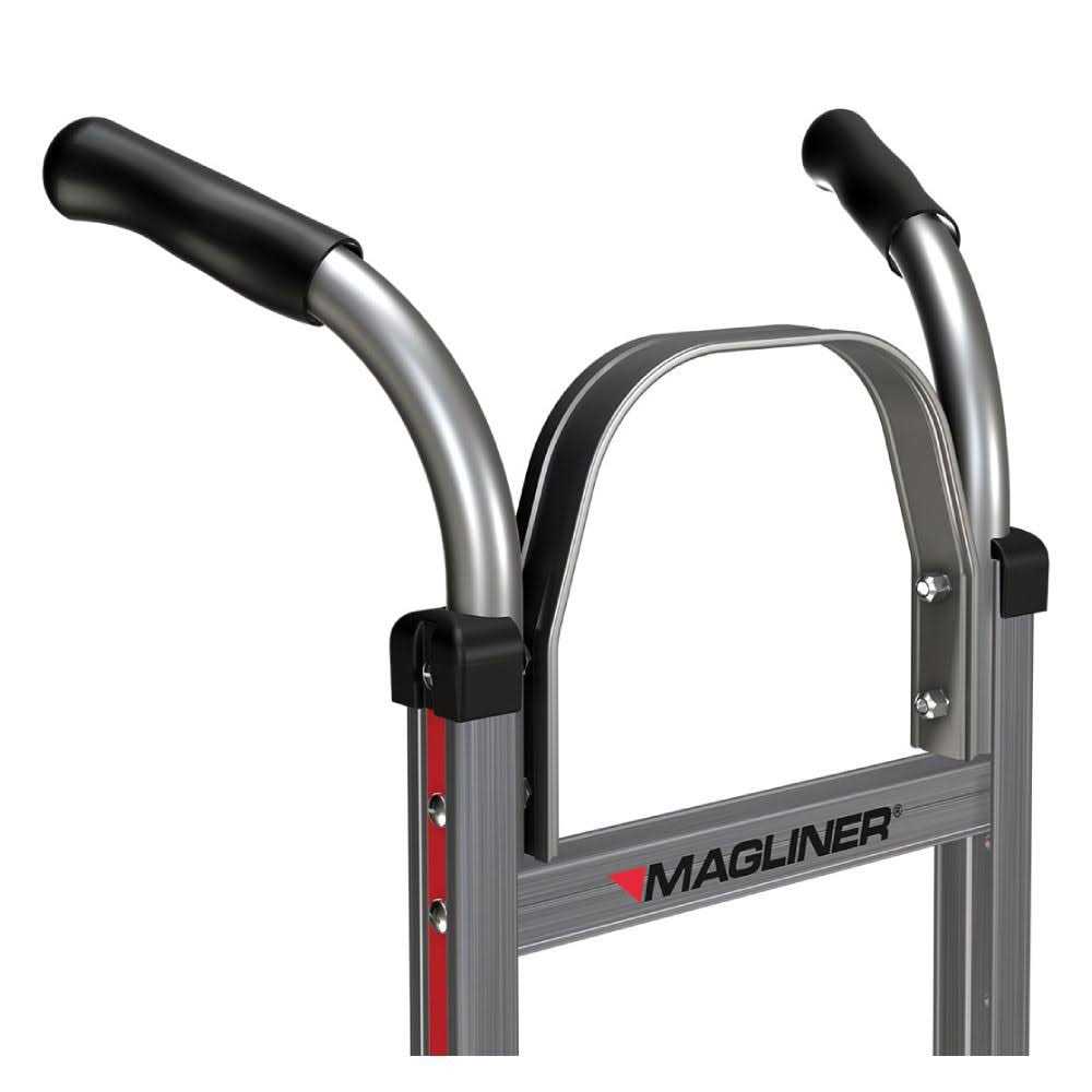 Magliner’s double pistol grip handle offers two-hand control for maximum management of heavy loads. Ergonomic handle grips provide optimum comfort. U-shaped brace increases the load surface area of frame. Hand truck frame not included.
