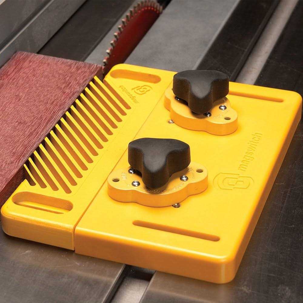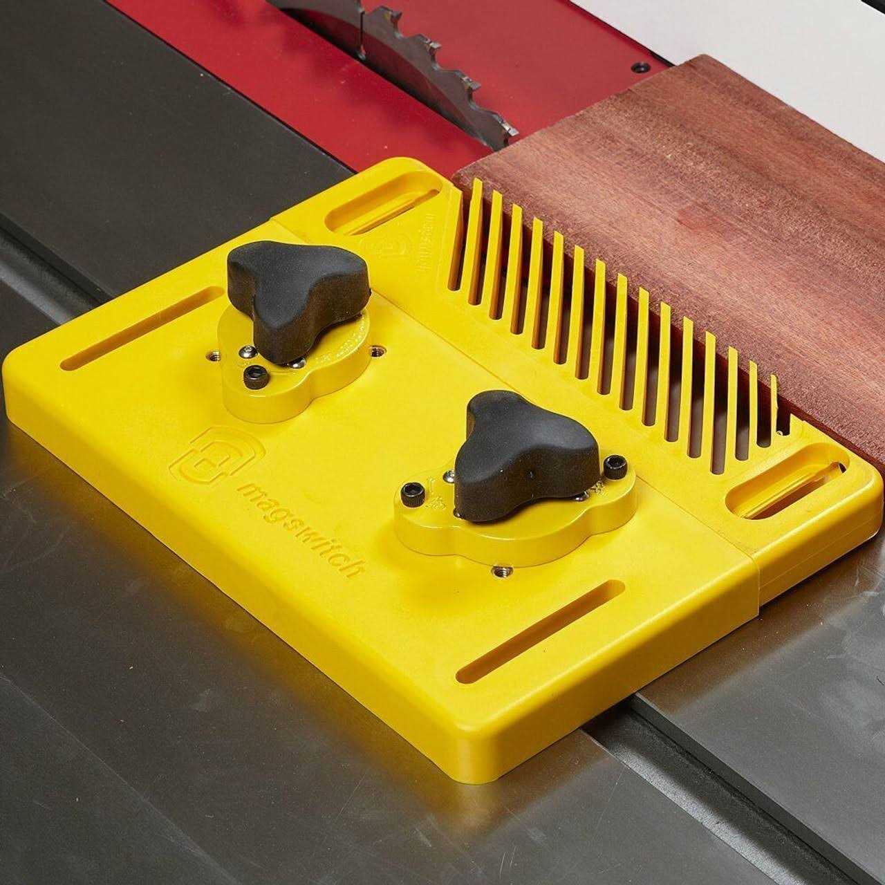 This is the perfect launch into the Magswitch Workholding System; all the other great tool attachments simply mount to the base as needed. Features core advantages of Magswitch, including fast, strong setup anywhere on a steel table or cast iron fence. Includes Reversible Featherboard Attachment, Universal Mounting Base and two Mag Jig 150s. Accommodates Vertical Featherboard Attachment for an added dimension of safety. Featherboard is reversible for left-hand and right-hand feeds. Position never limited by location of tool’s miter slot. Low profile design for use on your smallest tables.