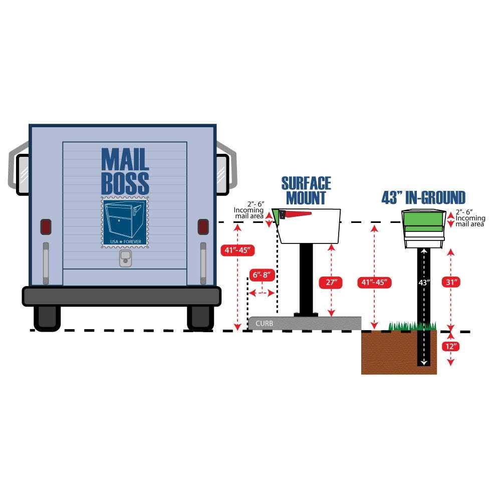 The Mail Boss Base Plate allows you to secure a mailbox post to a variety of hard surfaces including concrete or asphalt. Constructed of 10-gauge galvanized steel for strength and stability, the base plate features a durable powder-coated finish available in black, granite, bronze or white. Generally, the Mail Boss Base Plate is used with our 27′′ Surface Mount Post; however, the Base Plate may also be used with our 38′′ and 43′′ posts if necessary.