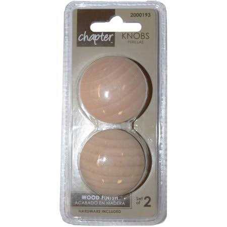 Mainstays traditional round cabinet knobs add a touch of rustic presence to your kitchen or bathroom. The timeless design compliments a wide range of decorative styles and the unfinished wood finish features a warm undertone with smooth surface. Easily transform the look and feel of your space or freshen up a piece of furniture by simply updating your cabinet hardware. This knob measures 1-1/2 inches (38 mm) in diameter and has a durable wood construction. The package includes (2) cabinet knobs and (2) 8-32 x 1 inch mounting screws for a quick, stress free installation. This classic round knob is also available in a 10 count pack. Product dimensions are 1.5 in. L x 1.5 in. W x 1 in. H.