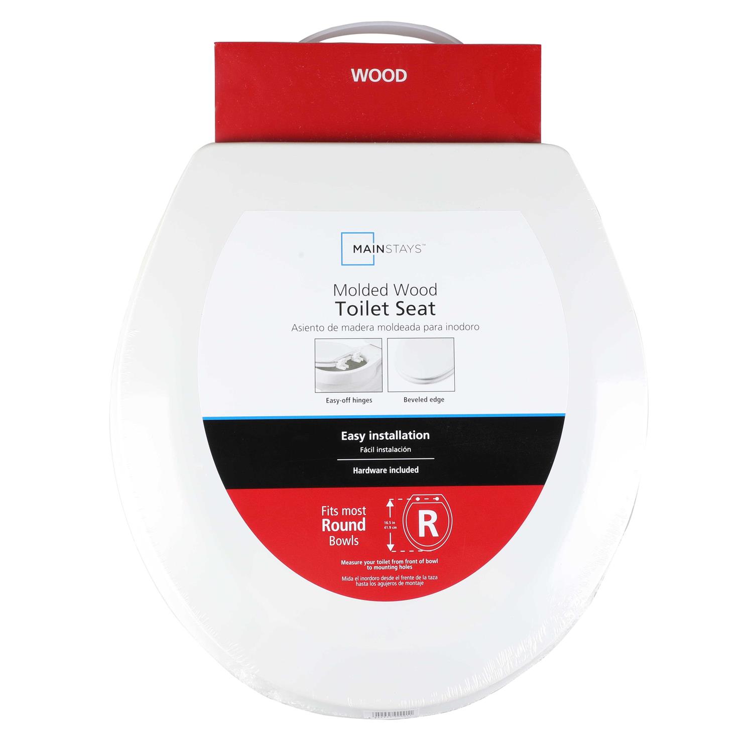Indulge yourself with the pinnacle of comfort when you are sitting on the throne in your home with this Molded Wood Toilet Seat by Mainstays. This elegant toilet seat fits most round bowls and can be easily assembled using the basic tools included in the packaging. To maintain the pristine condition of the seat clean this toilet seat with a soft damp cloth while avoiding abrasive cleaners. The molded wood toilet seat is a pleasure to sit on and is sure to greatly improve your experience in the bathroom.