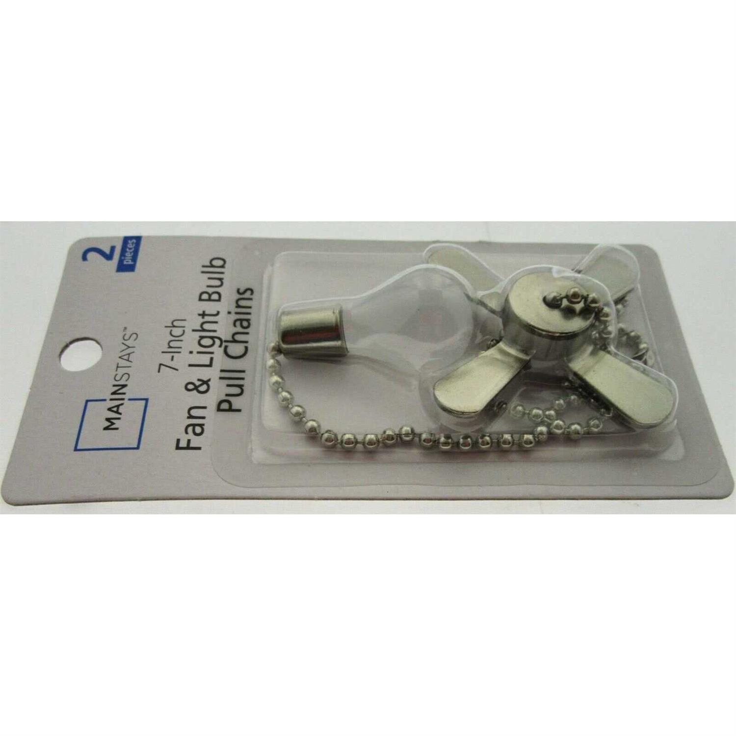 The Mainstays 7 inch Satin Nickel Fan Bulb Ceiling Fan Pull Chains are perfect when it comes to replacing your current pull chain or extending the already existing fan dangle when it’s just a bit out of reach! One chain with a light bulb to control the fan light and one chain with a fan to control the fan speed. No more guessing which chain controls which function, even in the dark!