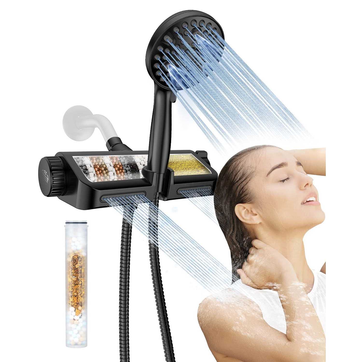 2-in-1 Dual Shower Head with Handheld: The MakeFit 2-in-1 Dual Shower Head Combo Set is the perfect combination of a fixed shower head and a versatile handheld shower. The high-pressure Massage Shower Head offers a soothing shoulder-to-shoulder, neck, and back massage for tension relief and relaxation. The Handheld Shower Head offers multiple settings, including rain, massage, mist, and pause mode, allowing for a personalized shower experience. Enjoy a Spa-like Massage Shower: Feeling tired after a long day at work? Transform your bathroom into a spa-like experience with the MakeFit massaging shower head. Enjoy a powerful and invigorating massage that relieves muscle tension and washes away stress. Targeting key pressure points, this unique design provides a soothing and revitalizing masaage experience at home. Shower Head Filter for Hard Water: Are you experiencing dry skin, weak hair, or unpleasant odors coming from your showerhead due to hard water? You might want to try MakeFit Water Softener Shower Head, which features a revolutionary filter system containing the most patented KDF-55, filtering beads and mineral stone balls, effectively filters out chlorine, fluoride, heavy metals, and other contaminants from your shower water. Point Jet Mode & Extra Long Hose: Just press the back button to switch to Point Jet Mode and effortlessly tackle tough cleaning tasks, such as toilets, mops, tile walls, bathtubs, and hard-to-reach corners. The 79-inch stainless steel hose provides freedom of movement and easy access to difficult areas. This massaging shower head features an angle-adjustable brass swivel ball joint for comfortable showering at various heights and angles. Easy installation and filter replacement: The transparent filter cartridge allows you to see when it needs replacing, and its universal G1/2″ threads can be quickly attached to any standard shower arm or extender. The user manual provides step-by-step instructions for a hassle-free set-up. You can easily install it within minutes using just your hands, without the need for a plumber or pipe tape. Purchase with confidence! Matte Black shower head with handheld combo, dual shower head with handheld combo, filtered shower head, shower head with filter, hard water shower filter, high pressure shower head, shower head with handheld spray combo, dual shower head with handheld set, filtering shower head, filter shower head, hand held shower head, shower head with hose, hard water shower head filter, shower head with filters, water softener shower head, high pressure shower head, high pressure shower head with handheld, massage shower head, massaging shower head, shower head amssager, water filter shower head, filtered shower head for hard water, soft water shower head, hard water shower head shower head water softener, filtering shower head shower head filters to remove chlorine and heavy metals, filtered shower head with handheld, filter shower head with hose, purifying shower head, shower head purifier, shower head beads, handheld shower head with filter, bead shower head, hard water shower filter head water softening shower head, water softener shower head for hard water, hard water filtering shower head filtered shower head for well water, high flow shower head, mist shower head