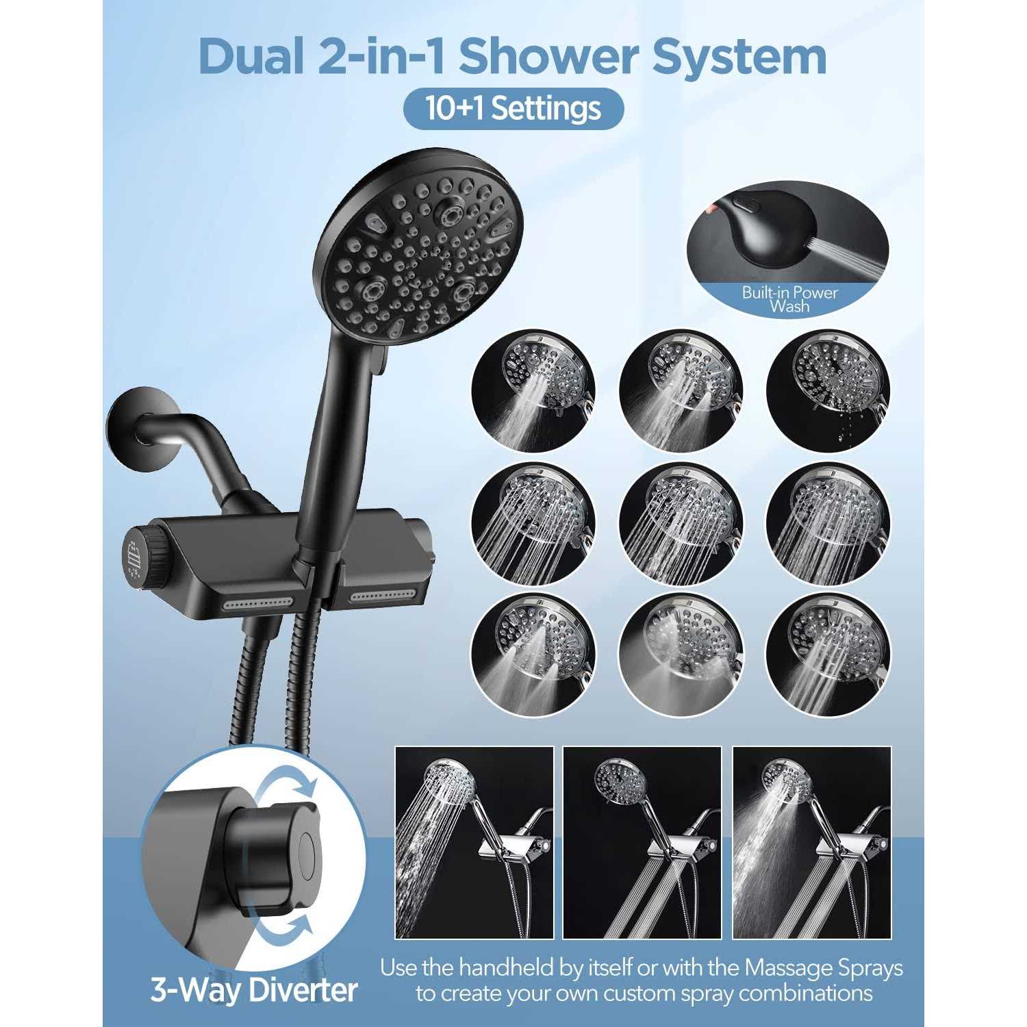 MakeFit Filtered Shower Head with Handheld Combo Matte Black – Dual 2-in-1 Spa System with Massage Shower Head and 10 Modes Hand Held Shower Head,