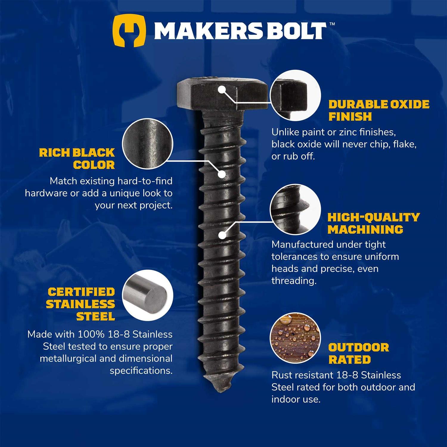 Makers Bolt Stainless Steel Black Lag Bolts Hex Lag Screws 18-8 Stainless Black Oxidized in USA