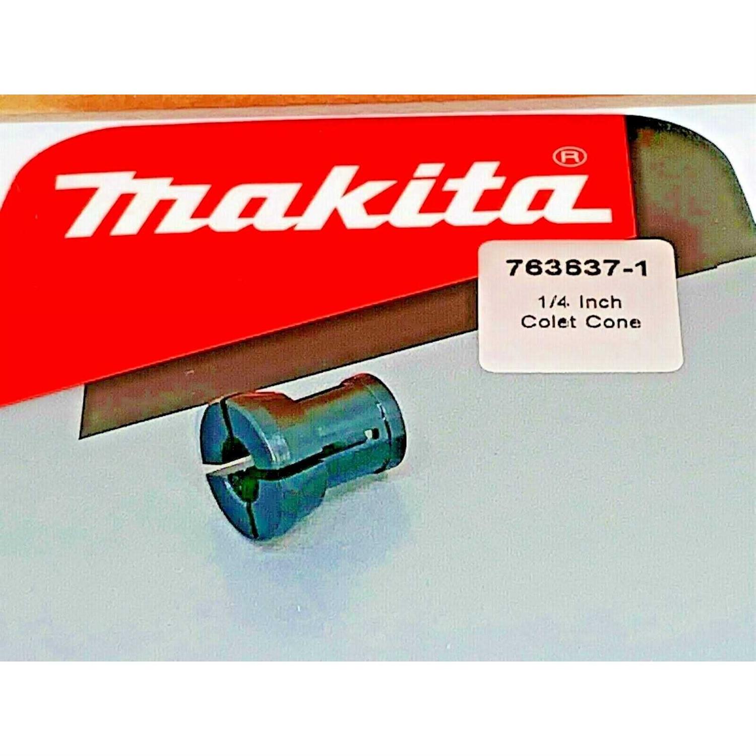 The Makita 763637-1 1/4 inch Collet Cone is a genuine Makita replacement part that is designed to securely hold 1/4 inch shank router bits in place. It is a high-quality, durable part that is made from hardened steel and features a precision-ground bore for accurate bit centering. This collet cone is compatible with the following Makita router models: RP0900K, RT0700C, RT0701C, DRT50, 3620, 3621, 3621A, RP1101, RT0700CX3, RT0700CX4, RT0701CX3, RT0701CX7 (sold separately). The Makita 763637-1 is a 1/4-inch collet cone designed for use with Makita routers. It is a direct replacement for the original equipment and is made from high-quality materials for added durability and long life. Please reference the tool manual before purchasing to ensure the proper fit and care of these tool parts.