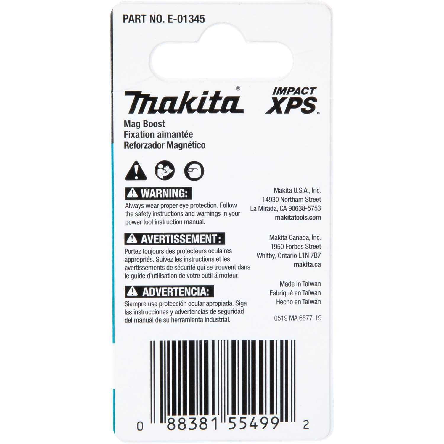 Makita Impact XPS is new innovation in fastening with insert bits and fastening accessories built for the demands of the professional contractor. The Makita Mag Boost is a great addition to any users’ accessory assortment. It slides right on to make the bit more magnetic than a standard bit. The Mag Boost makes it easy for users to keep screws in position in tight quarters and long reach situations. The Makita ImpactXPS Magnetic Boost is ideal for use with the 12-sided bit collar of ImpactXPS Power Bits (sold separately) for added holding power. ImpactXPS Power Bits are engineered for driving screws in a wide variety of demanding applications including deck building, framing, installing plywood subfloor, and more.