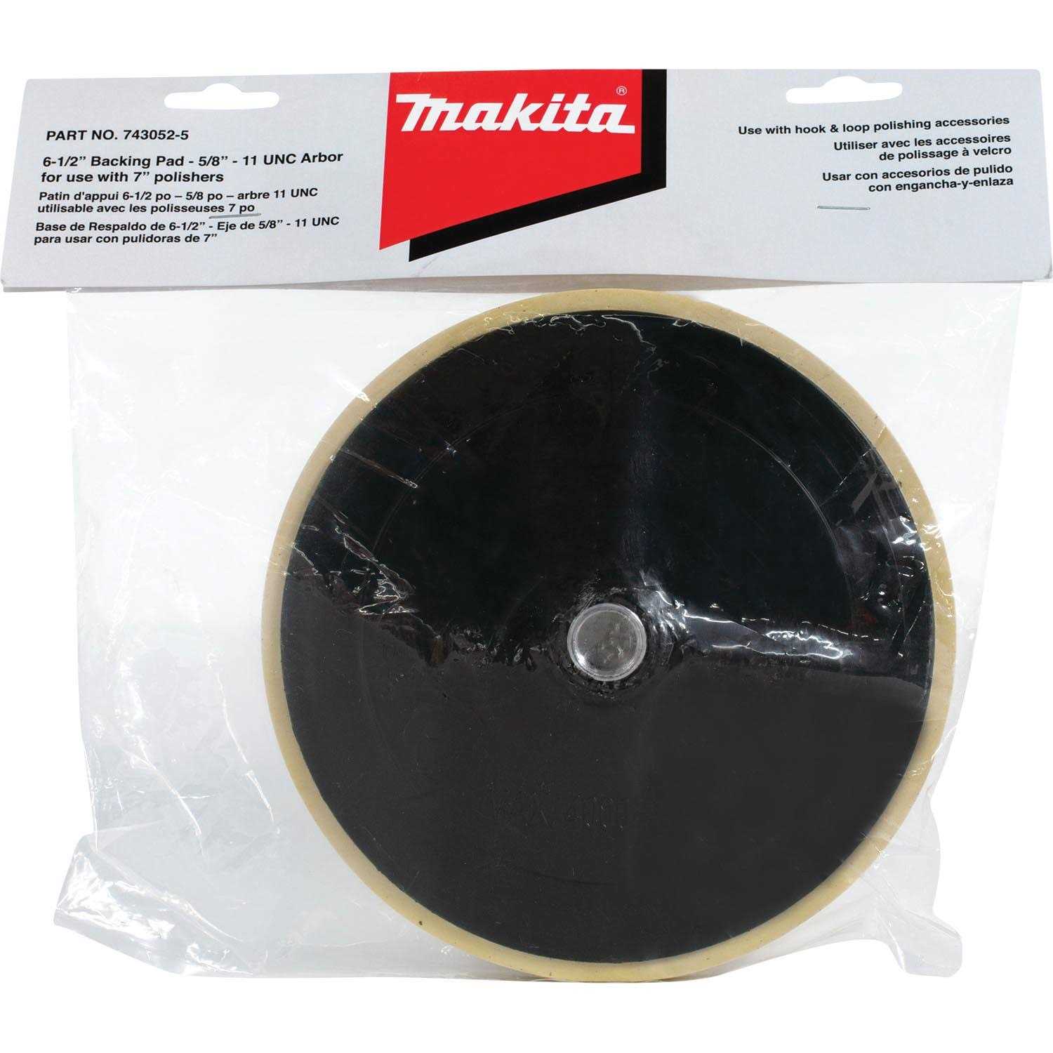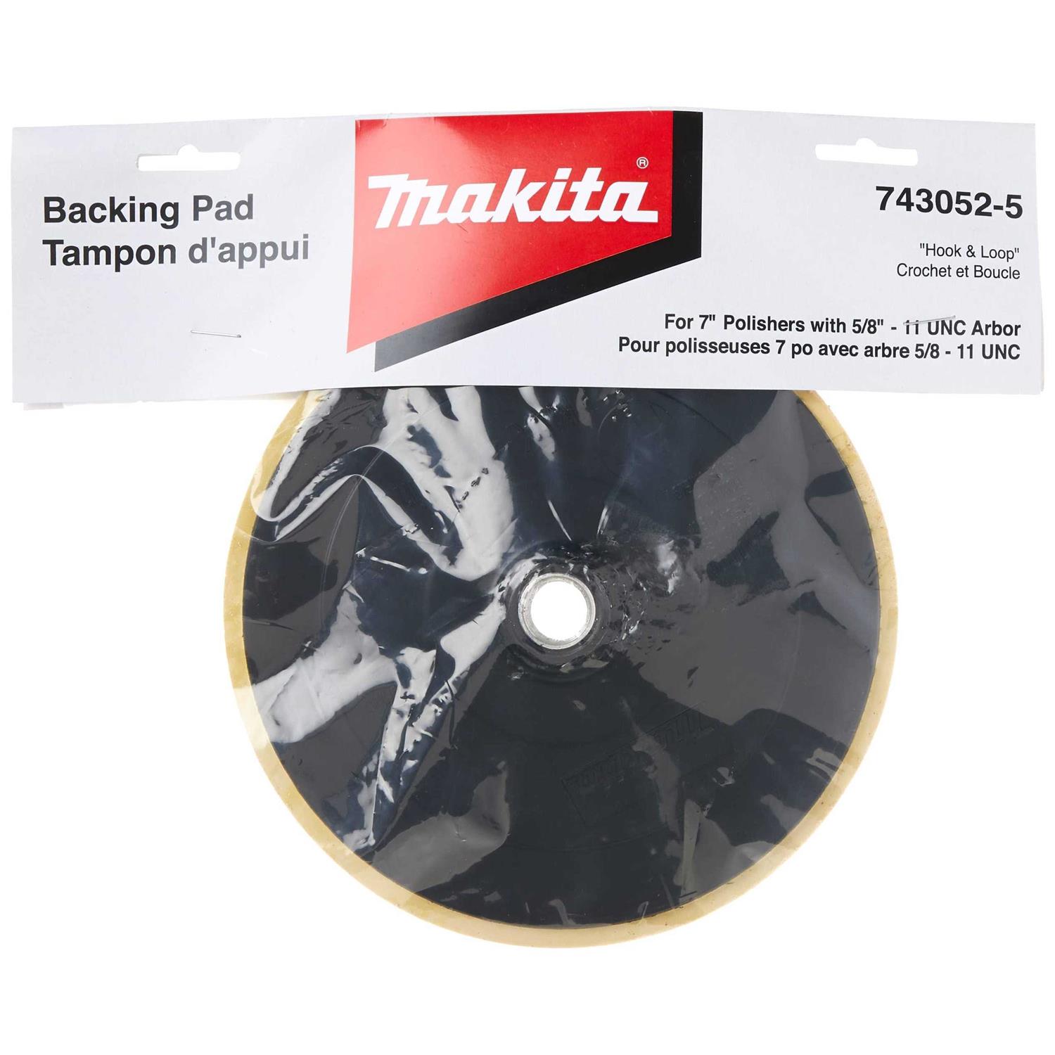 The Makita hook and loop backing pad can be used on 7 in sander and polishers that have a 5/8 ft 11 UNC arbor. It is designed for quick and easy pad changes. The backing pad can be used with different types of polishing and compounding pads that use the hook and loop backing pad system.