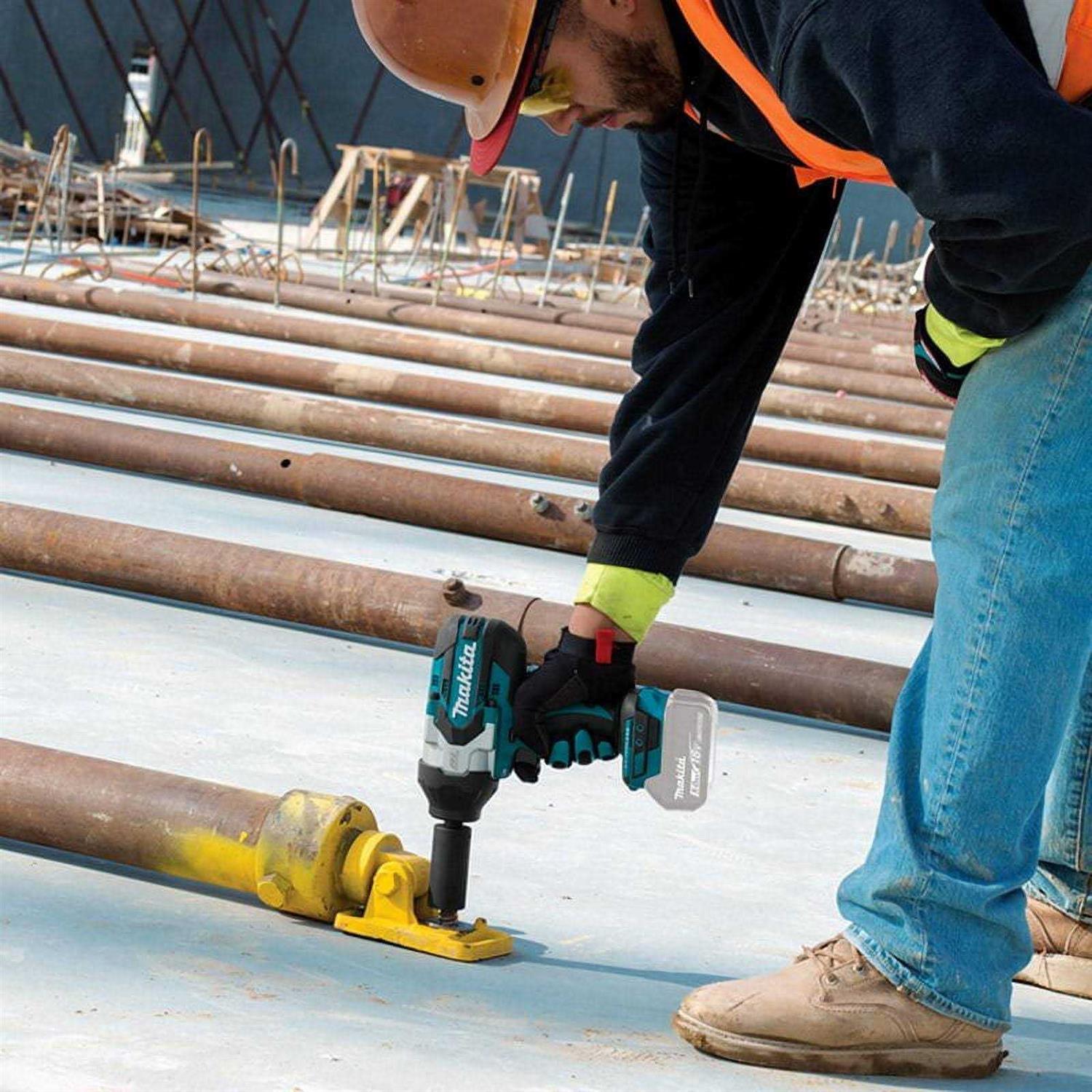 Makita brushless tools consistently deliver high-power and long runtimes, and this bare 1/2 In. impact wrench is no different. The Makita XWT08T brushless impact wrench features a 1/2 inch square anvil with a friction ring for easy socket changes, and along with up to 740 ft.-lbs of fastening torque, it brings real strength to the remote locations. Paired with up to 1,180 ft-lbs of loosening torque, you always have the right tool for the task, whether it’s in the middle of the woods, repairing a rural power grid, or just the opposite wall of your garage. Several safety and comfort features are integrated into the tool, such as a vibration-dampener to protect the batteries from unwanted shaking, a reversible tool hook so you always have the tool close at hand, and rubber overmolding that provides both a soft grip and protection against bumps and shakes. It is powered by the Makita 18V Lithium-Ion line of batteries, so it works with the largest line of 18-volt cordless tools in the market, and it will fit right in with your existing Makita tools.