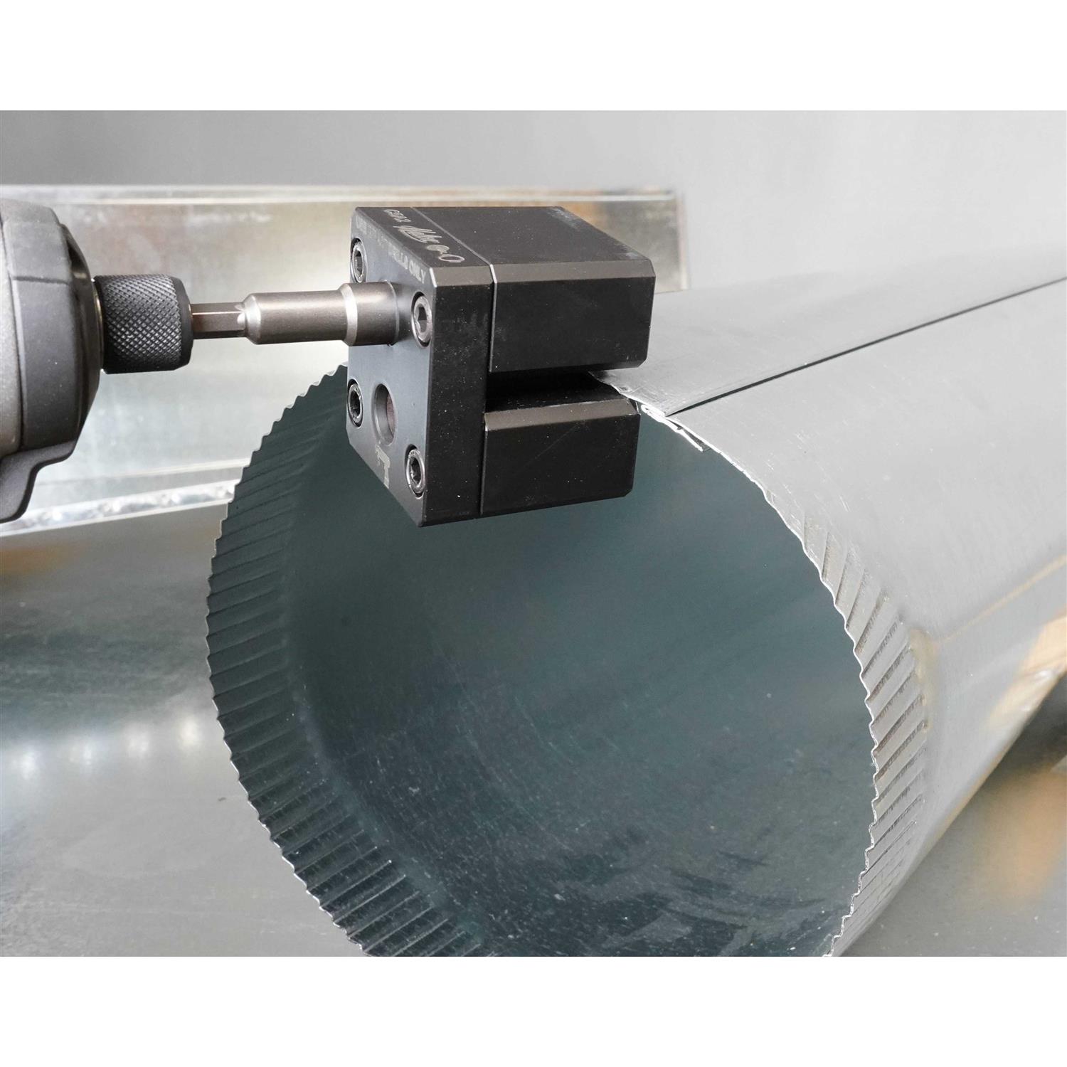 The Malco TurboCrimper IMPACT is a simple, compact accessory that works exclusively with the power assistance of impact driver technology to safely and efficiently crimp 30 to 24 gauge (0.41 to o.71 mm) galvanized round duct and (0.31 to 0.61 mm) black stove pipe. Based on actual field trials, the TurboCrimper Impact is 78% faster than using a manual sheet metal crimping tool! The TurboCrimper IMPACT does not require set-up or adjustment. Just chuck the 1/4 inch power groove drive shaft to your cordless or corded (Min.12 Volt DC / Max. 7 Amp AC) impact driver to immediately begin crimping multiple sizes, types and thickness of pipe and duct, including spiral duct, fast and easy. With the pipe or duct seam in closed position, start the crimp to one side of the seam by gently tugging on the driver trigger and angling the TurboCrimper IMPACT onto the metal edge. Walk the crimper around the pipe circumference in a controlled manner and then angle the crimper off the metal as the crimper approaches the other side of the seam. The TurboCrimper IMPACT is five times faster than a manual crimping tool based on actual field trials! It is comfortable for any operator to maneuver and, lefties take note, it works with the impact driver in forward or reverse. The handy little TurboCrimper IMPACT is a must-have accessory for every HVAC installer and easily stores in a ready tool pouch or bag when not in use.