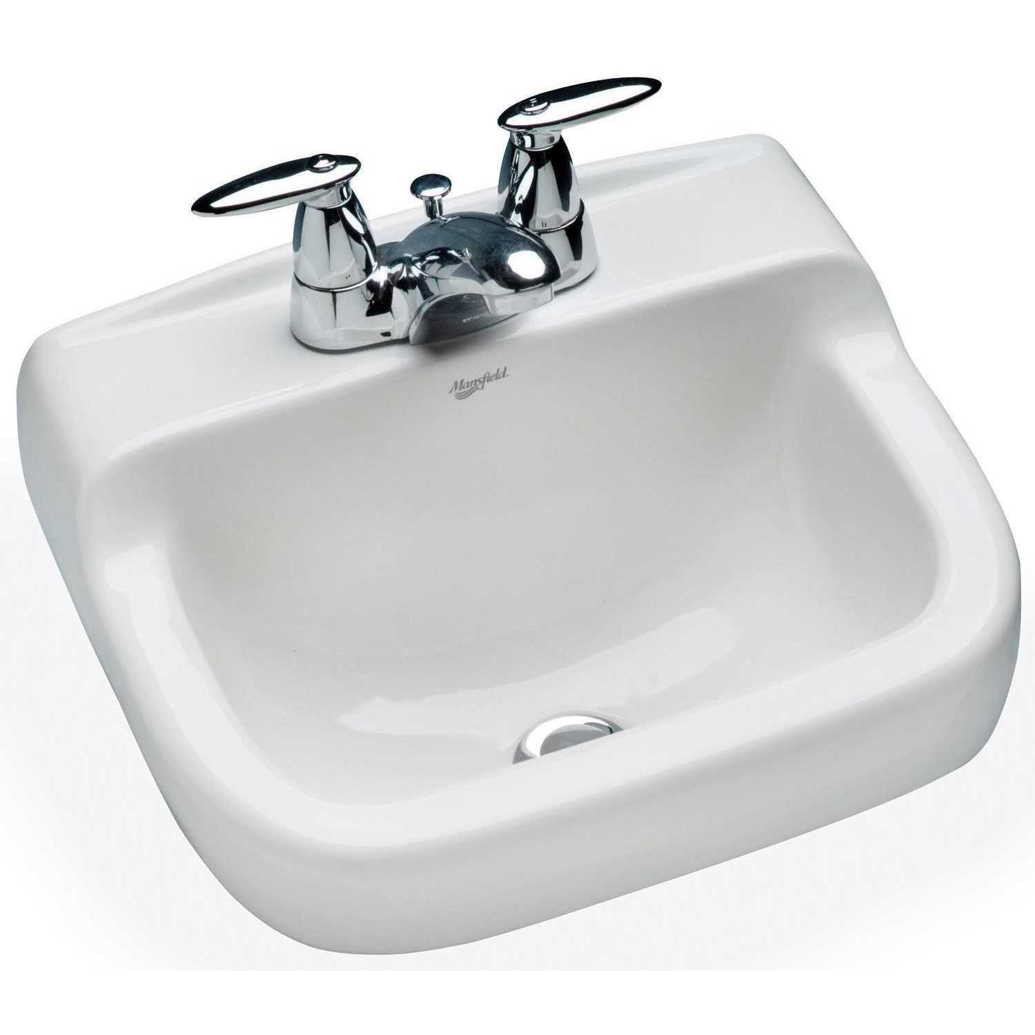 Mansfield Plumbing Products This bathroom sink is compact and convenient. A wall-mount lavatory with a faucet centre. Complete with hanger and installation instructions. Less faucet, drain assembly, and supply.