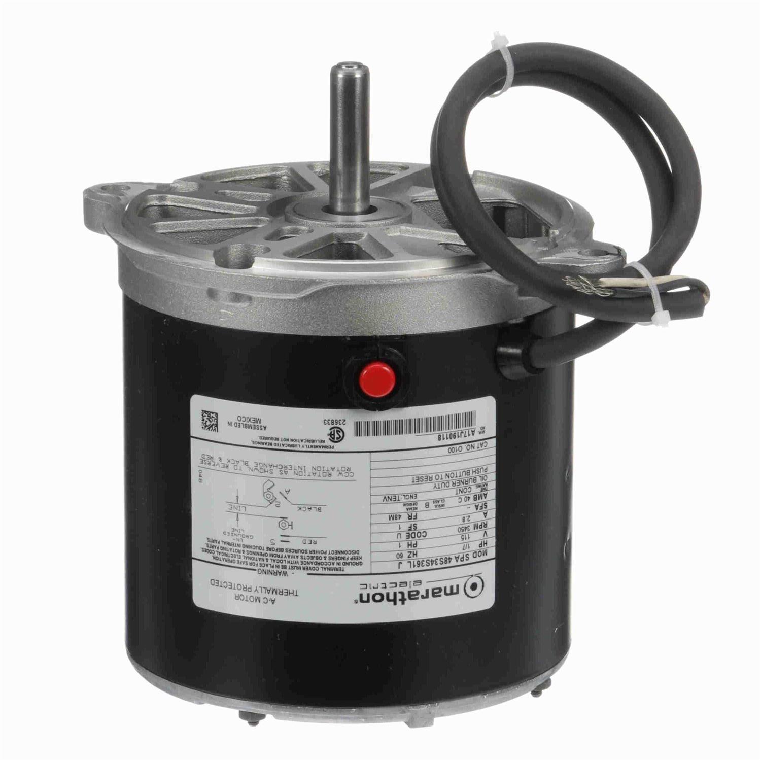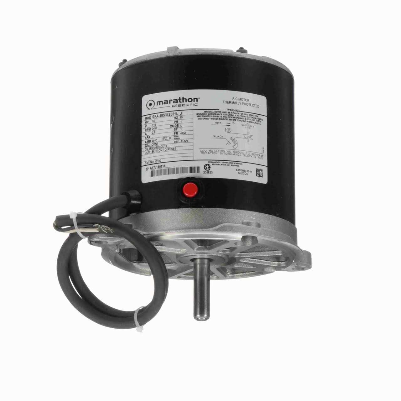 Marathon Motors Oil Burner Motor, O100, 48S34S361, 1/7HP, 3600RPM, 115V, 1PH, 48MZ, Semi Enclosed Direct Replacement motors for residential and commercial oil burners and hot water pressure/steam cleaners. Voltage available is 115/230 Vac, Single Phase. Horsepower Range from Stock is 1/8 – 1/2.