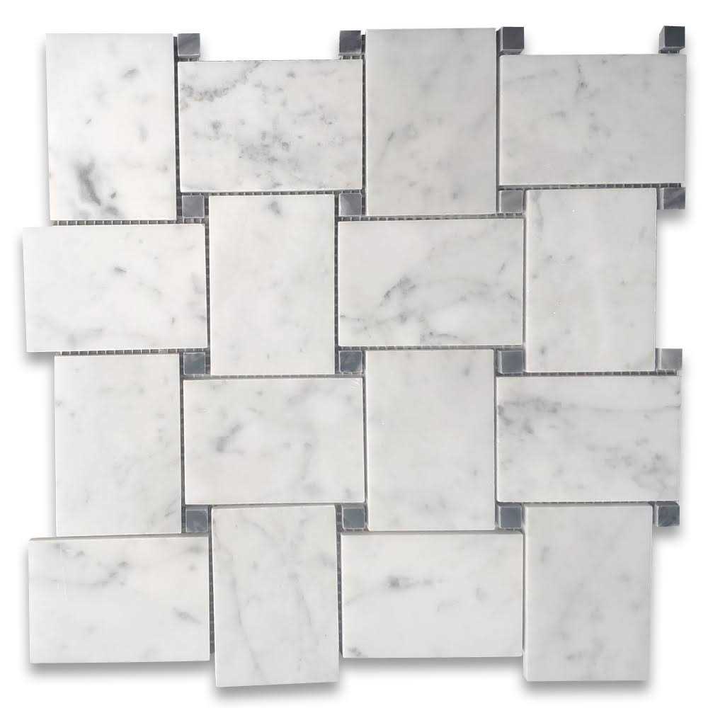 Large Basketweave Tile Carrara White Marble Bardiglio Gray Dots Polish