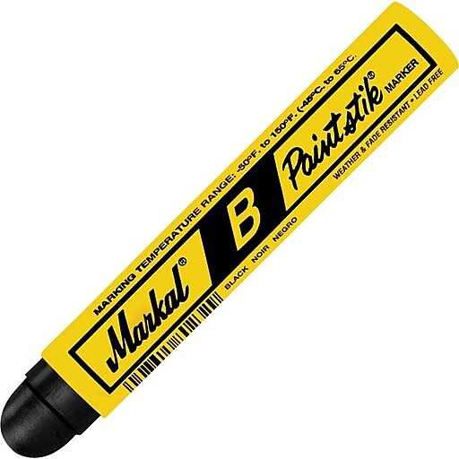 As Markal’s most versatile and economic marker, the original B Paintstik solid paint marker combines the durability of paint in the convenience of a crayon. The real paint formula has superior marking performance on oily, icy, wet, dry or cold surfaces and is weather- and UV-resistant. This Paintstik works on rough, rusty, smooth, or dirty surfaces. For use on multiple surfaces. Industrial-grade paint in convenient stick form. Solid marker eliminates worn-out tips, ideal for rough surfaces. Xylene-free, low VOC formula safe for glass, metals, plastic, wood, concrete. California Prop 65 approved; no harmful chemicals. Sold 12 markers per carton. Sold As 12/Box.