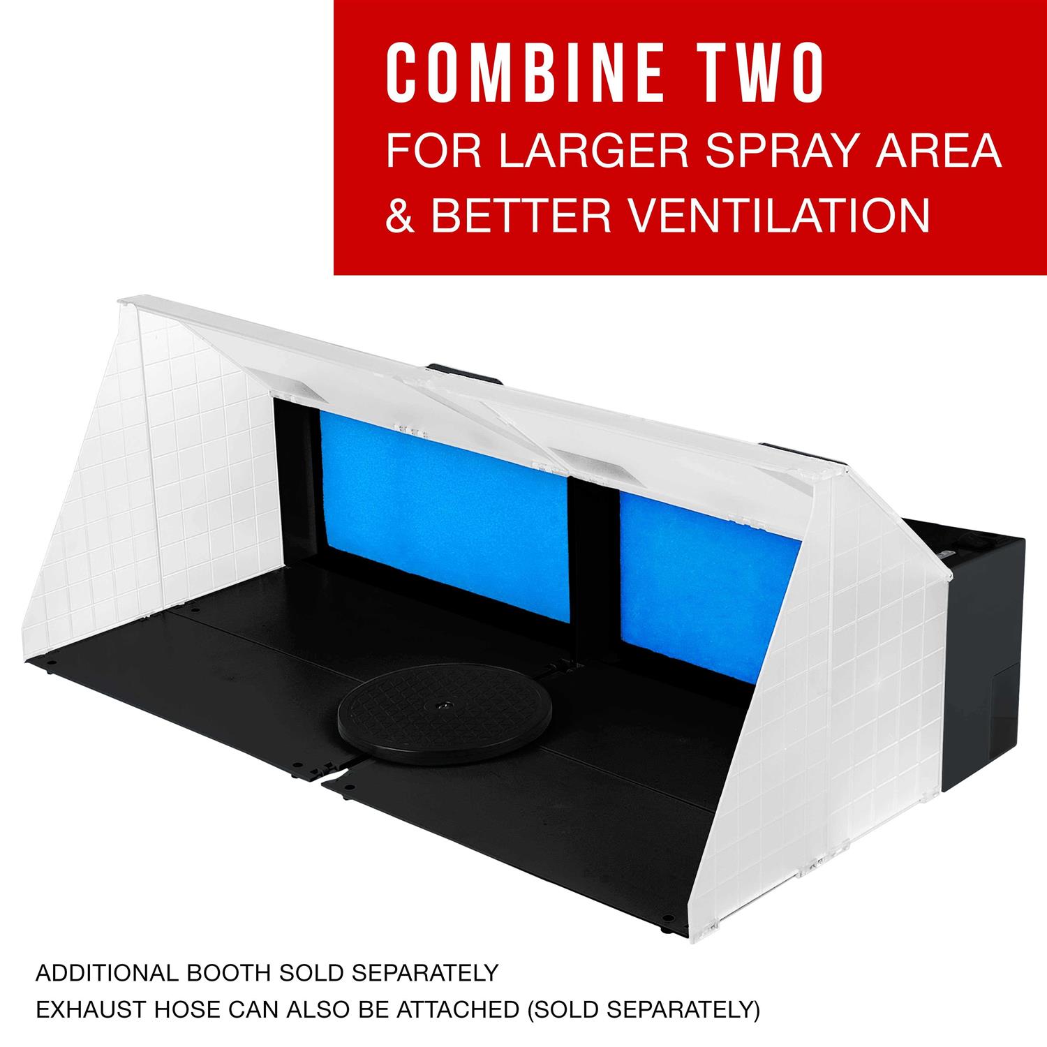 Exhaust extension hose not included (available separately or with booth & exhaust hose kits)a great booth that’s easy to set up and use. Keeps your work environment neat and clean by reducing the mess and hazards when spraying in confined areas. The high-volume fan extracts overspray and reduces the fumes from the airbrush and spray gun materials. It’s ideal to use when spraying models, small parts, ceramics, radio control models etc.