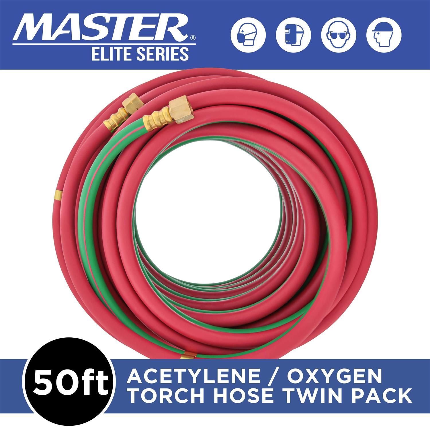 Master Pro Series 50 Foot Oxygen Acetylene Hose Twin Welding Hose Set, 1/4 inch B Fittings, 9/16-18 – Oxy Acetylene Cutting Torch Hoses, Welder Gas