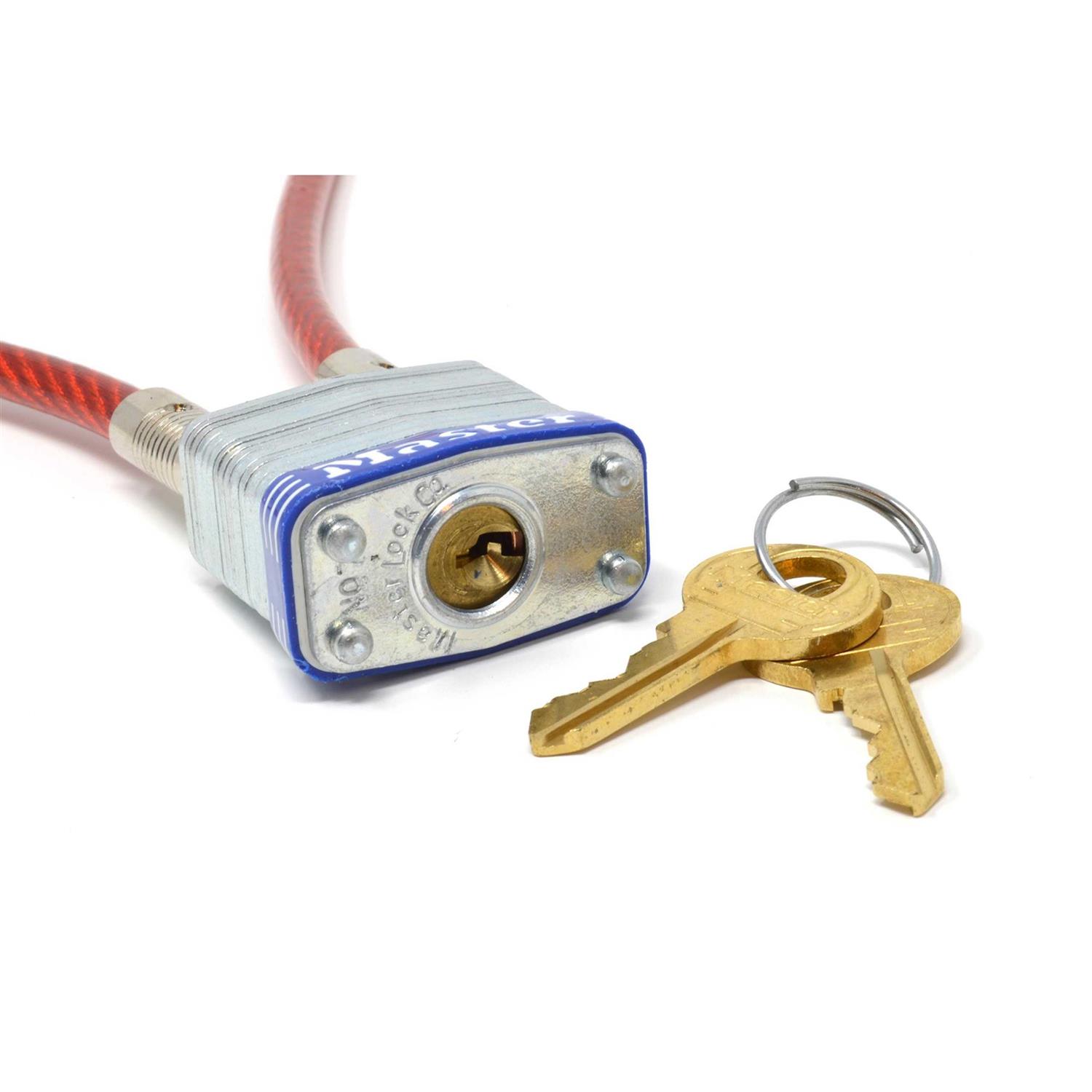 Protect your investment with the Master Lock 719D Laminated Padlock and Cable. It has a vinyl-coated steel cable that connects to a metal lock with a precision four-pin tumbler mechanism for added strength. The bicycle cable lock is also ideal for use with grills and other outdoor equipment, residential fencing, gates and more. The pack includes two brass keys.