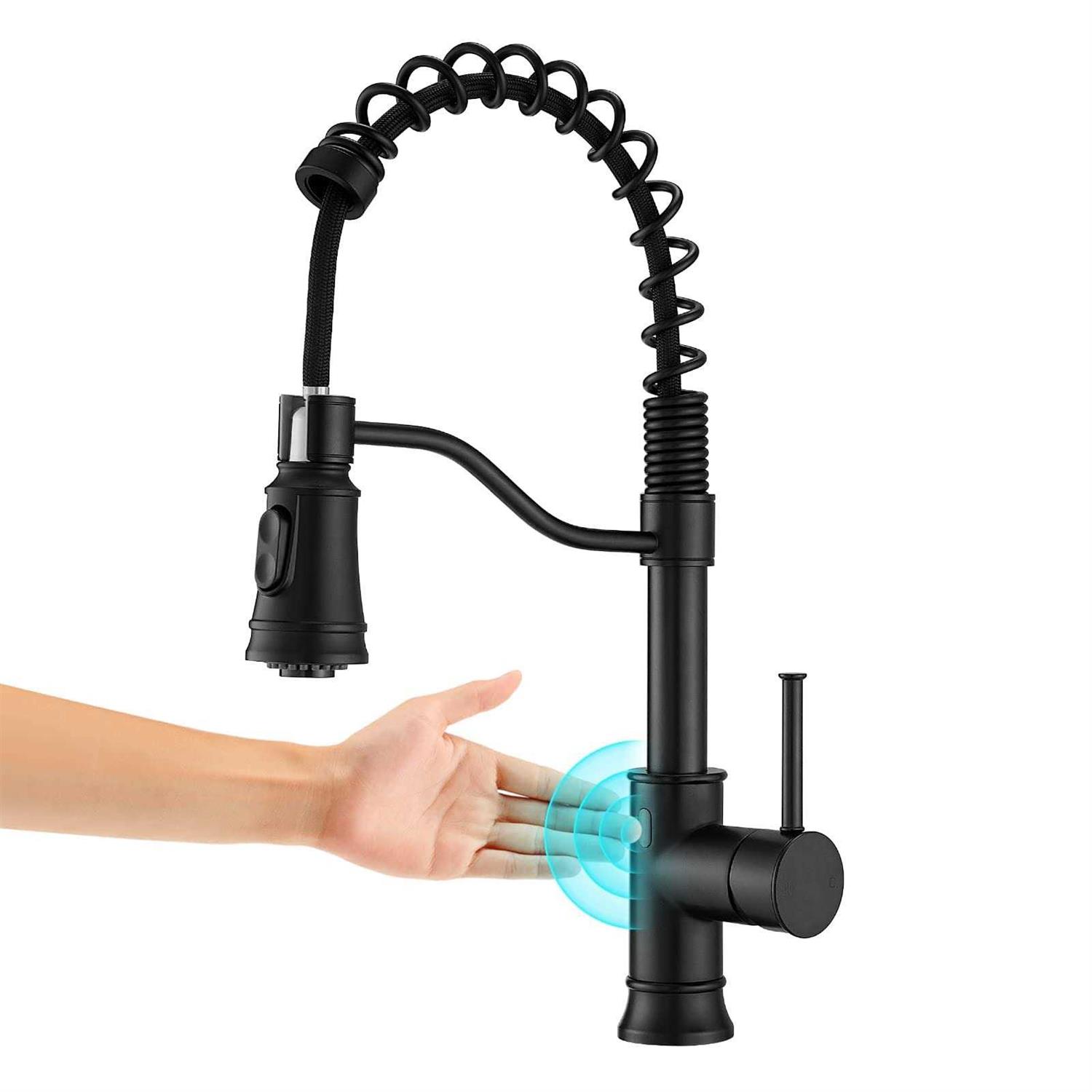 Matte Black Touchless Kitchen Faucet – WOJIUBUXIN Motion Sensor Smart Kitchen Sink Faucet with Pull Down Sprayer Single Handle Hands-Free Commercial