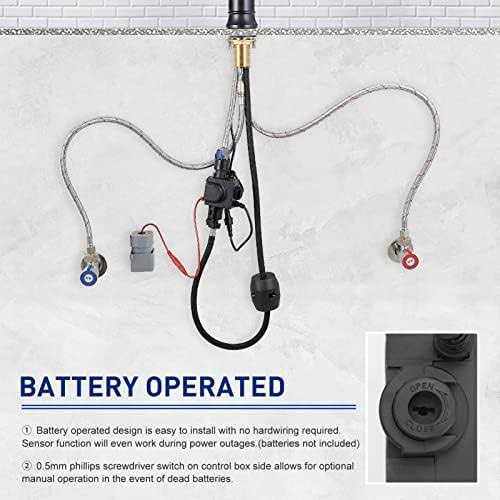 Smart Hands-Free Kitchen Faucets—A new motion-sensing technology has been introduced into the faucet, no need to touch, just wave your hand in front of the sensor, and the water will flow out through the sensing system. If you forget to turn off the faucet handle, it will turn off automatically within 3 minutes to save water.And turn the switch on the side of the control box to switch to manual mode. Dual-Function Pull Down Sprayer—Switch between dual spray modes at the touch of a button, stream mode – perfect for filling pots and pans,spray mode – perfect for wide superior cleaning. 20 inches pull-down spray hose can reach the farthest corners of your sink. When done,the spray hose pulls back automatically and smoothly docks in place. Commercial Style Design—kitchen sink faucet is both flexible and functional, with a heavy-duty open coil spring spout for an industrial look, compact 18 inch height fits beneath almost any kitchen cabinet. Touchless Faucets Easy To Install—All installation accessories are in the box, including instructions and 9/16″ water supply line. Note: 4 AA batteries need to be purchased by yourself /b .