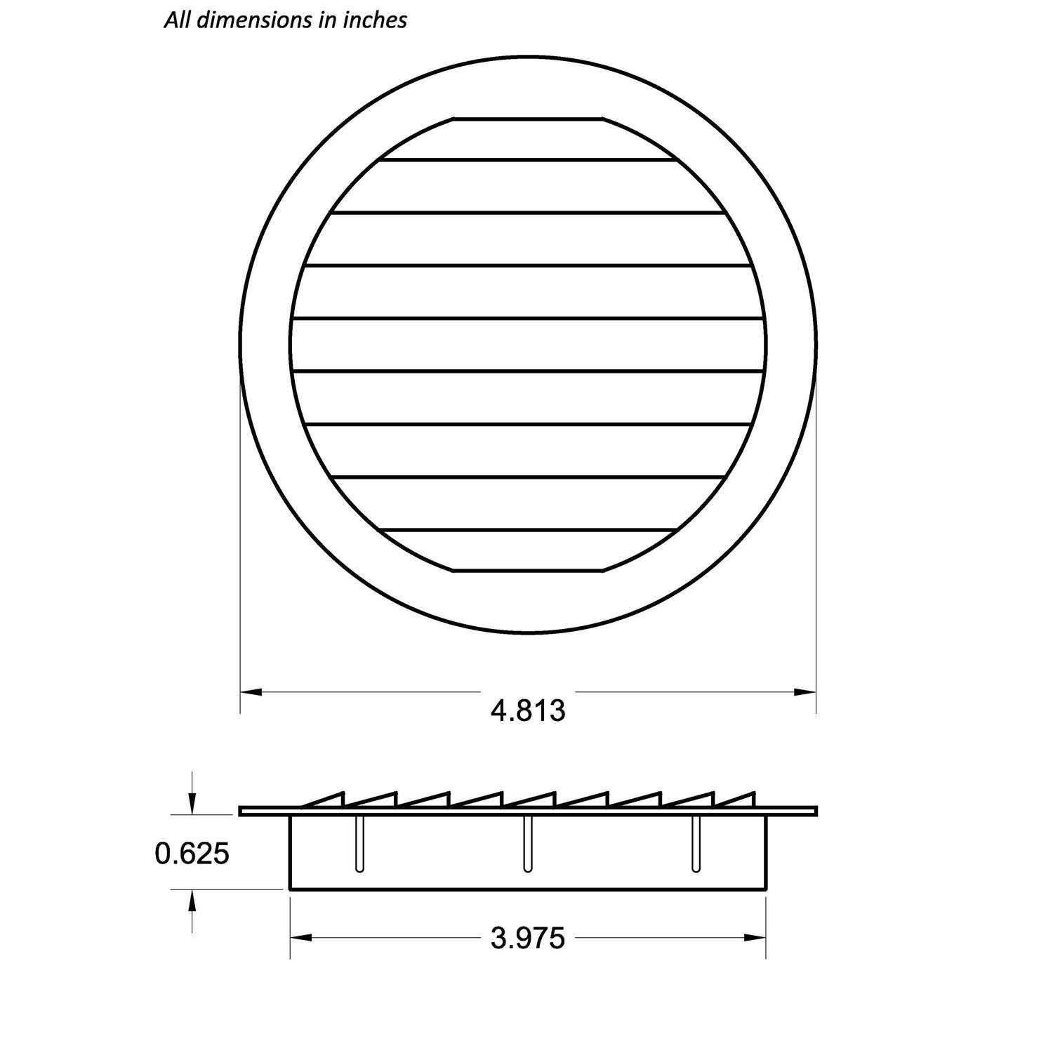 These small round plastic vents are made of high quality UV stabilized wire and cable grade polypropylene. They have a unique polypropylene screen system to keep insects out. They are easy to install. They fit into the hole made by a drill-type hole saw and are held in place by knobs on the side of the vent. No nails or screws are needed. They are used for a wide variety of ventilation, from eave and soffit ventilation to insect cages, display cases, spice racks, electrical and mechanical boxes, cargo crates and more. They have 0.200 si nfa (square inches of net free ventilation area).