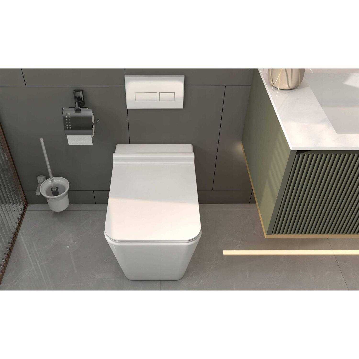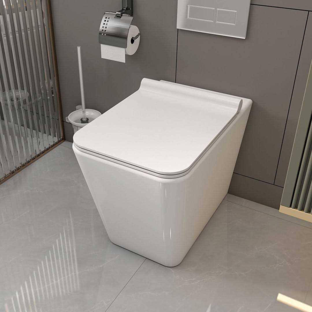 - One-piece Back-to-Wall SquareToilet Bowl offers a wide seating area .