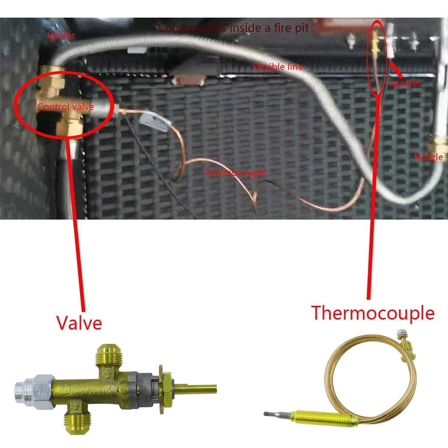 MENSI LPG Propane Fireplace Pit Gas Control Cock Valve w/ Thermocouple, Knob