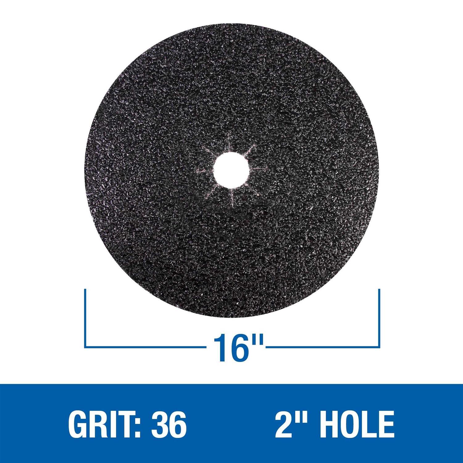- 16″ diameter cloth floor sanding discs for hardwood or concrete per box (2″ hole in center of disc to attach to sander)