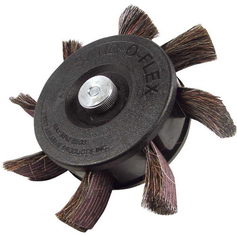 This disc abrasive features a 1in. wide strip that is backed by 8 cushioning brushes, helping it conform to most electric drill and bench grinders. The strong plastic body is able to withstand high-impact use. Made of high-impact plastic to handle consistent use. Abrasive strip is backed by 8 cushioning brushes to conform easily. Fits most electric drill and bench grinders. RPM will accommodate most electric drills.
