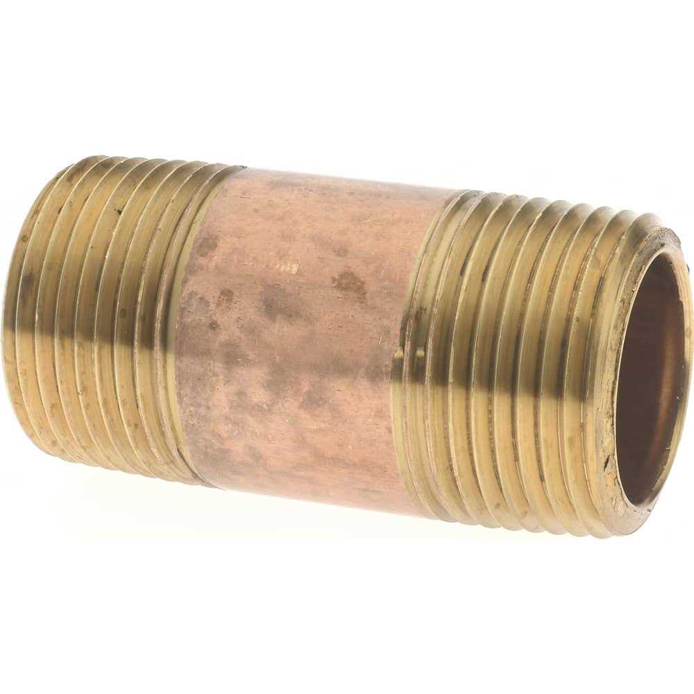 Brass nipples are produced from Seamless Red Brass Pipe, which is Alloy 230. Red brass nipples are easier to machine, less brittle to work with and far more resistant to corrosion than yellow brass (will not dezinctify). Brass offers good corrosion resistance from water and heat and resists attack from salt water and acids, minerals and peaty soils contained in water. Brass is utilized primarily for water in commercial plumbing and OEM applications, but is also used in oil, gas and steam applications.
